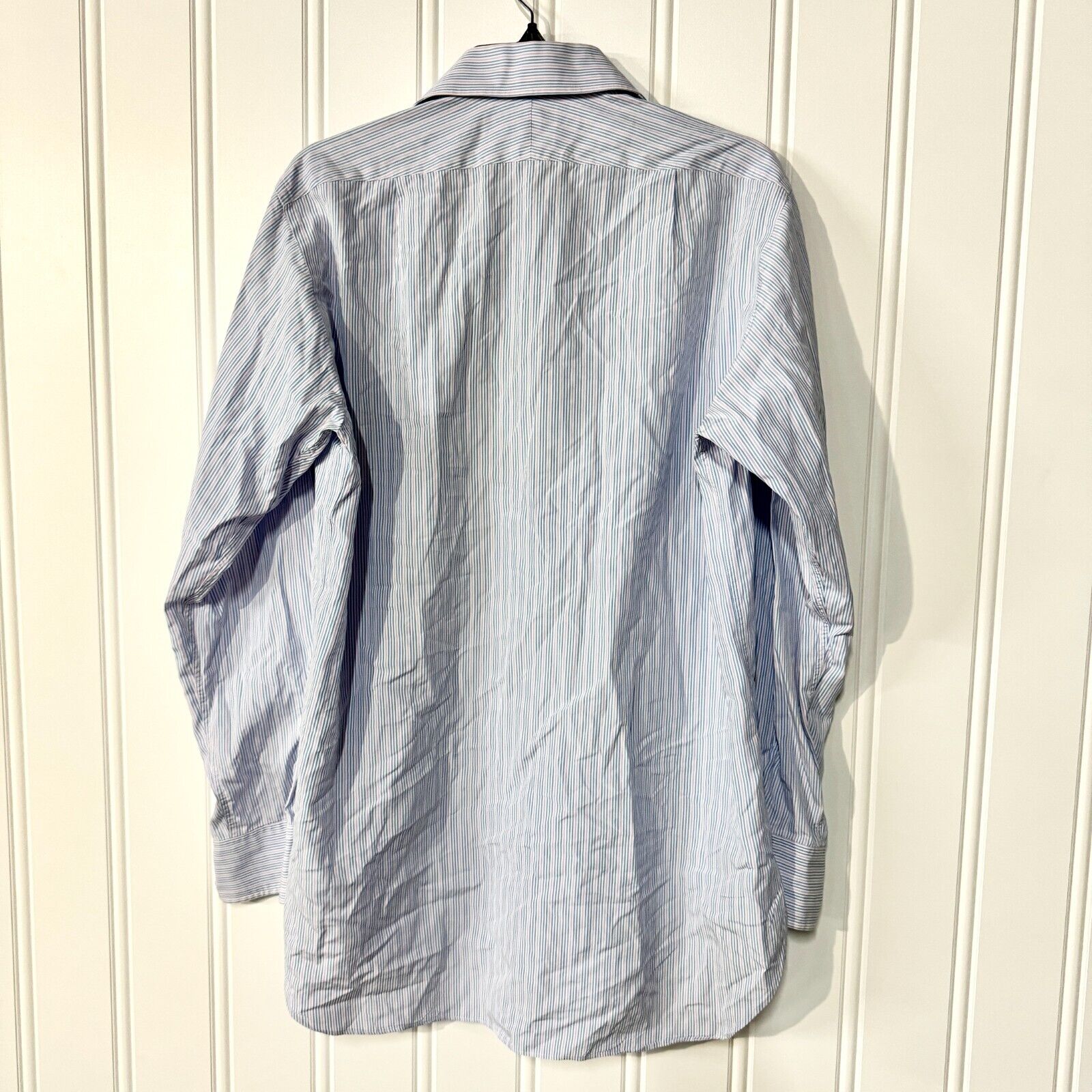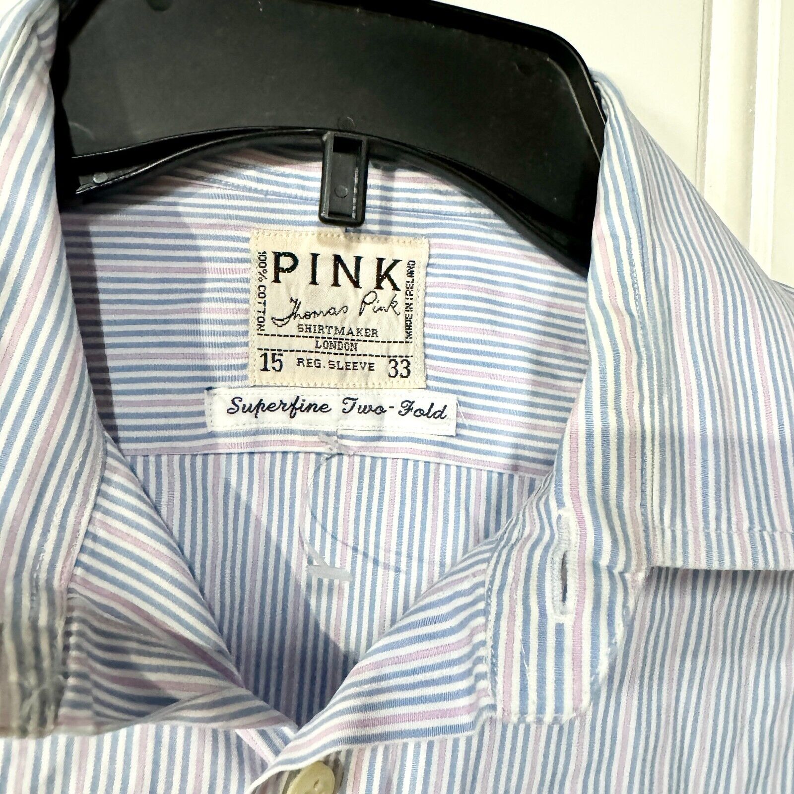 Thomas Pink Superfine Two Fold Blue Striped Long Sleeve Button Down- 15-33