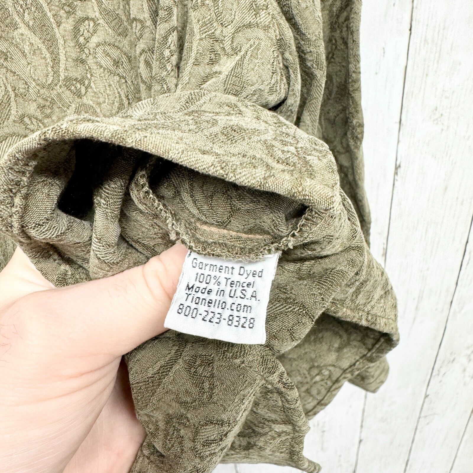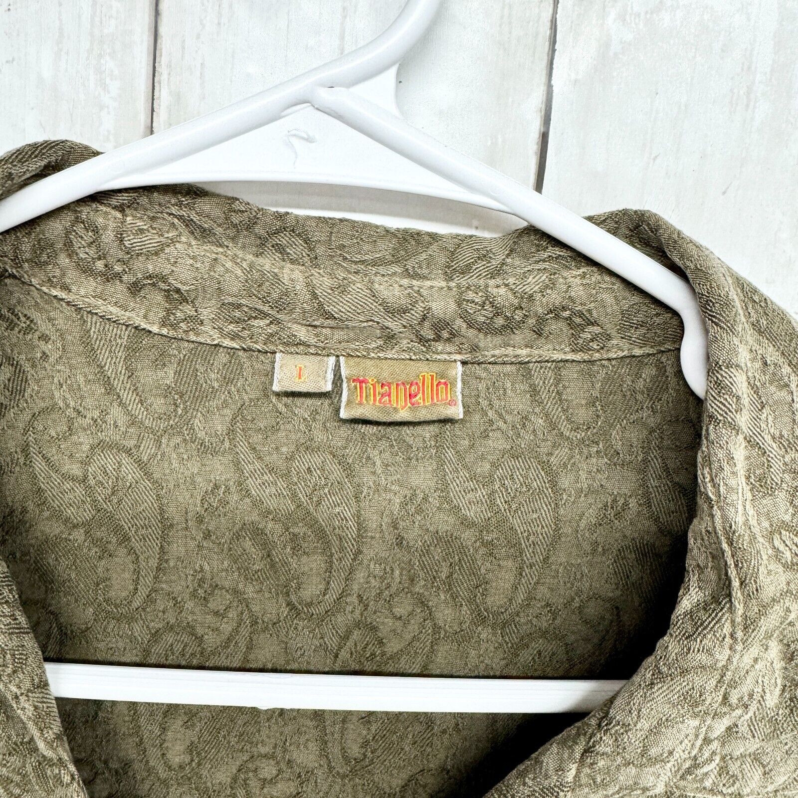 TIANELLO Button Up Women Size 1/XS-S Green VTG Paisley Long Sleeve 100% Tencel vintage, paisley, lightweight, silky, boho, elegant, soft, breathable, flowy, relaxed