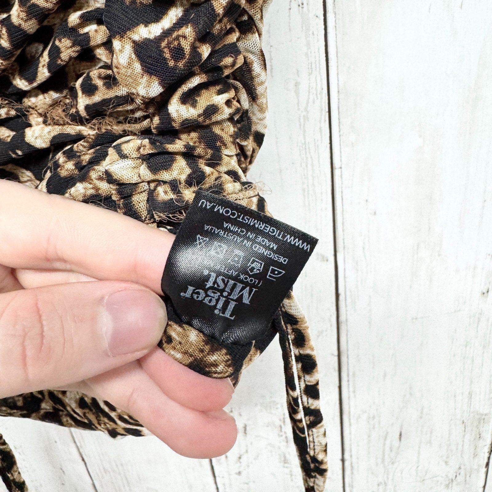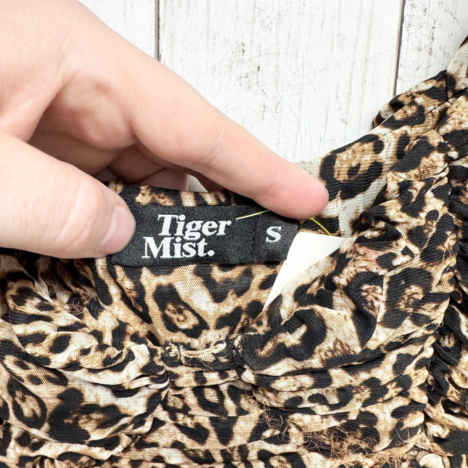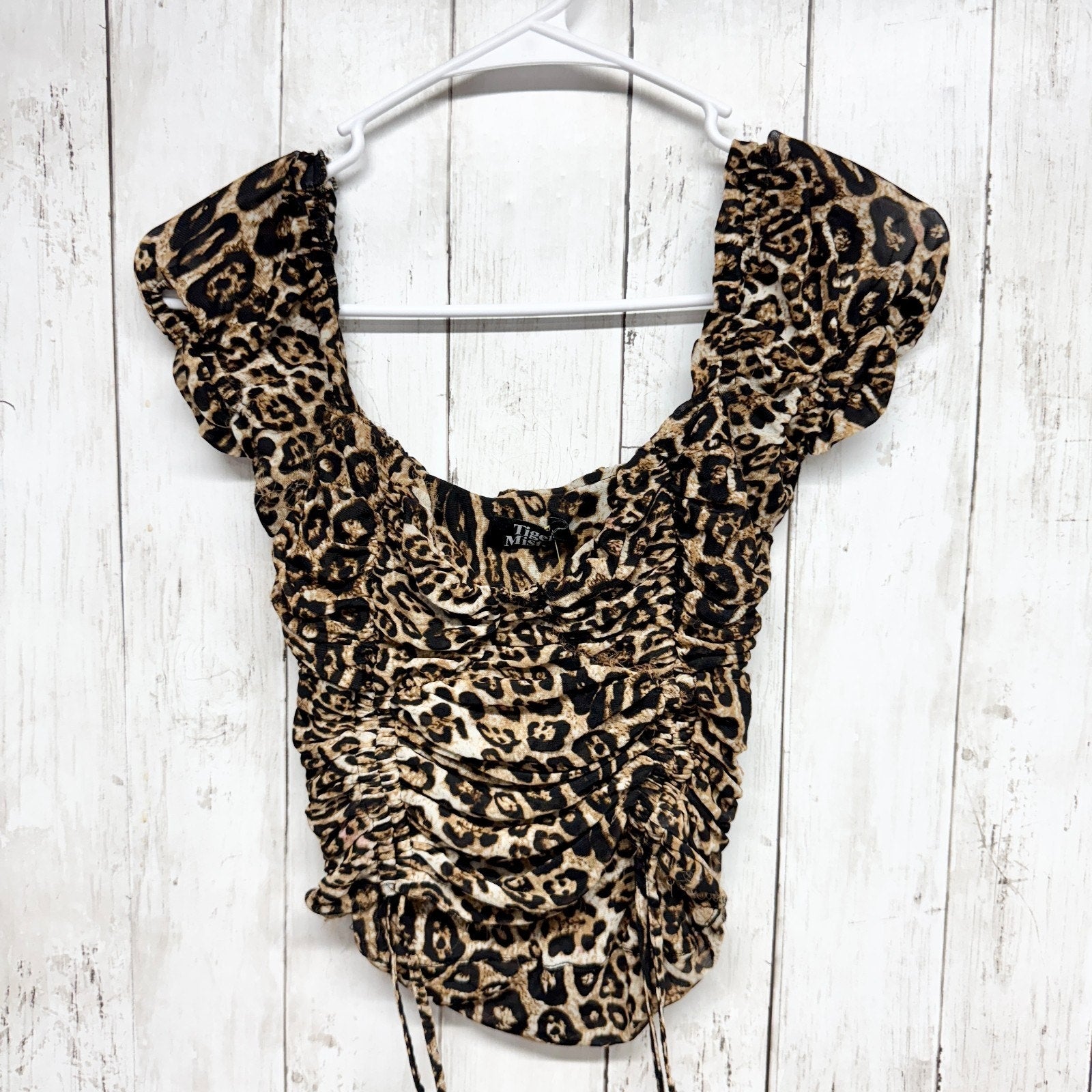 Tiger Mist Shirt Women Small Cheetah Print Cinched Ruched Short Sleeve Blouse