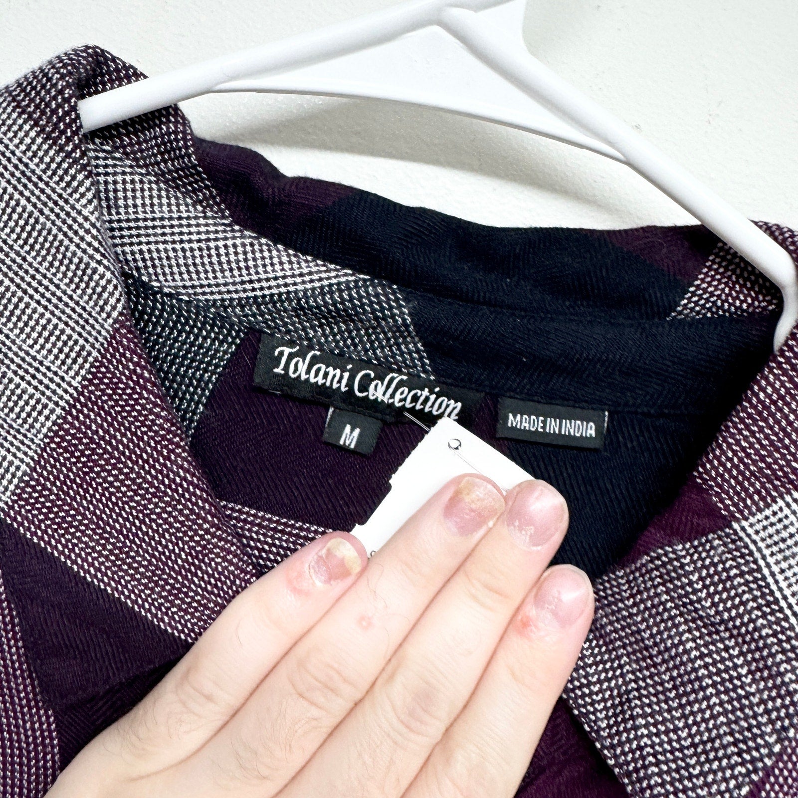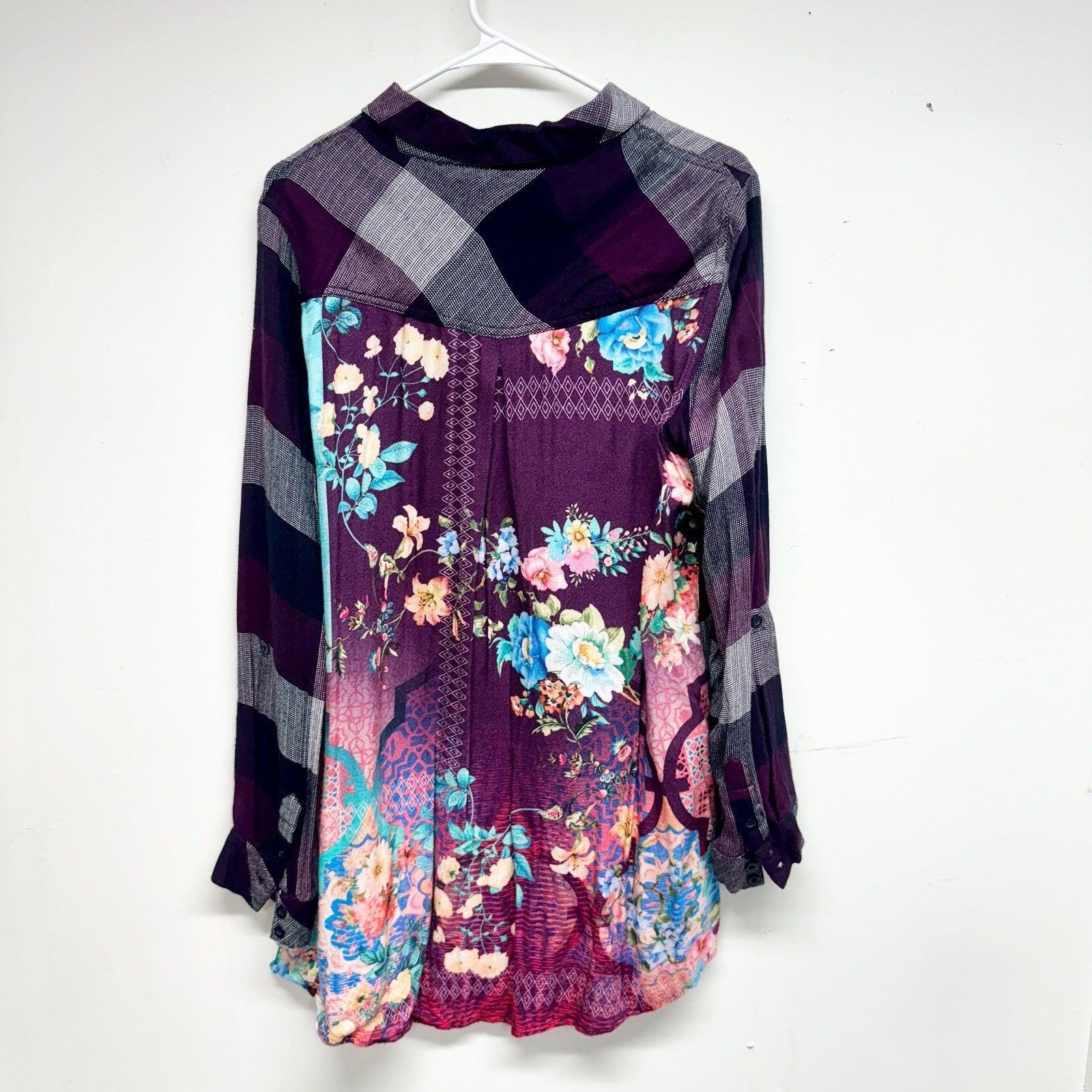 Tolani Collection Women Purple Plaid Button Down Tunic W/ Print Back Medium