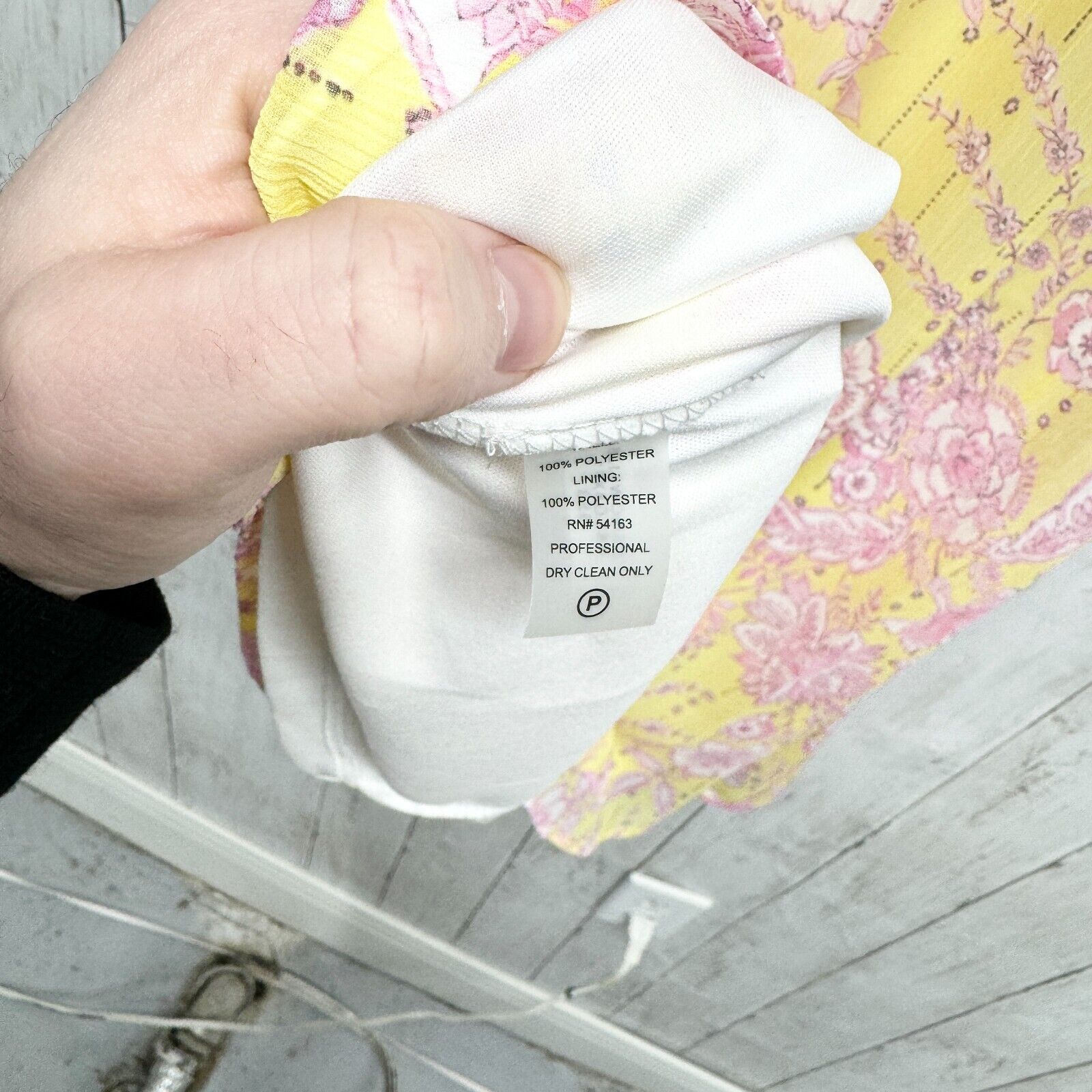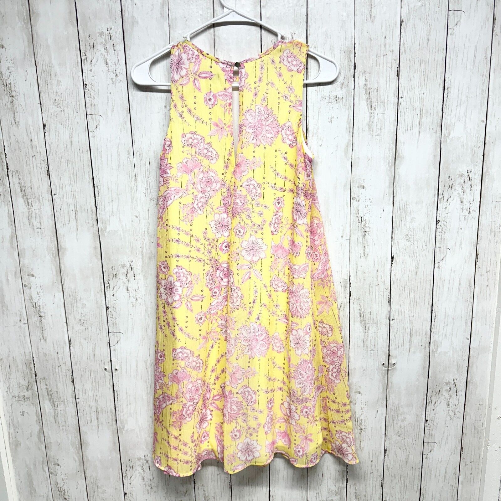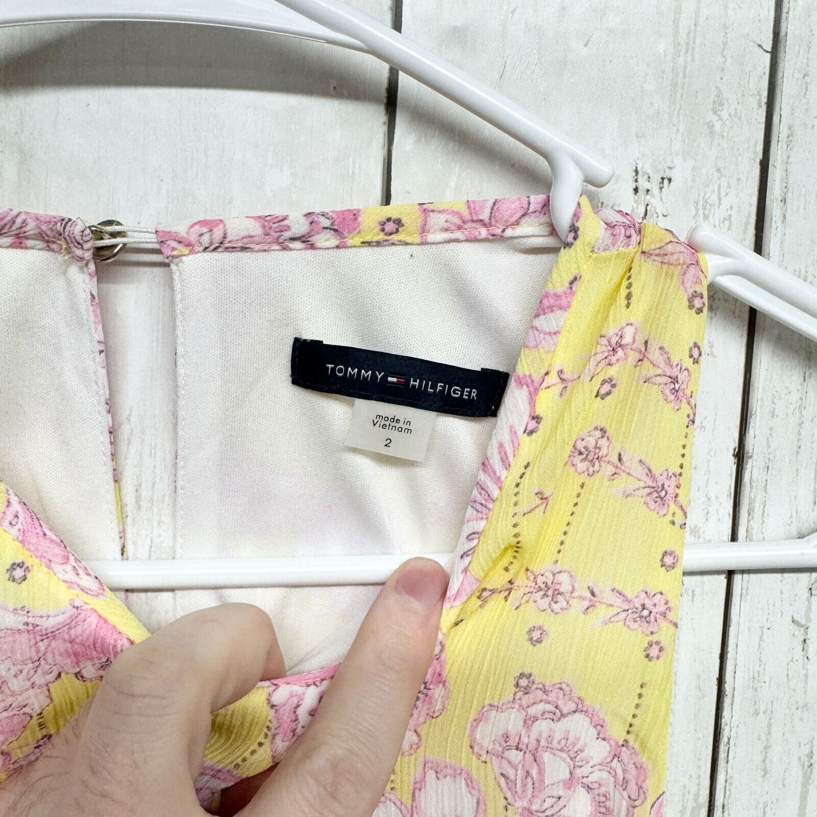 Tommy Hilfiger Dress Women's 2 Eloise Floral Chiffon Trapeze Sleeveless Yellow Women's size 2, yellow, floral, chiffon, trapeze, sleeveless, lightweight, flowy