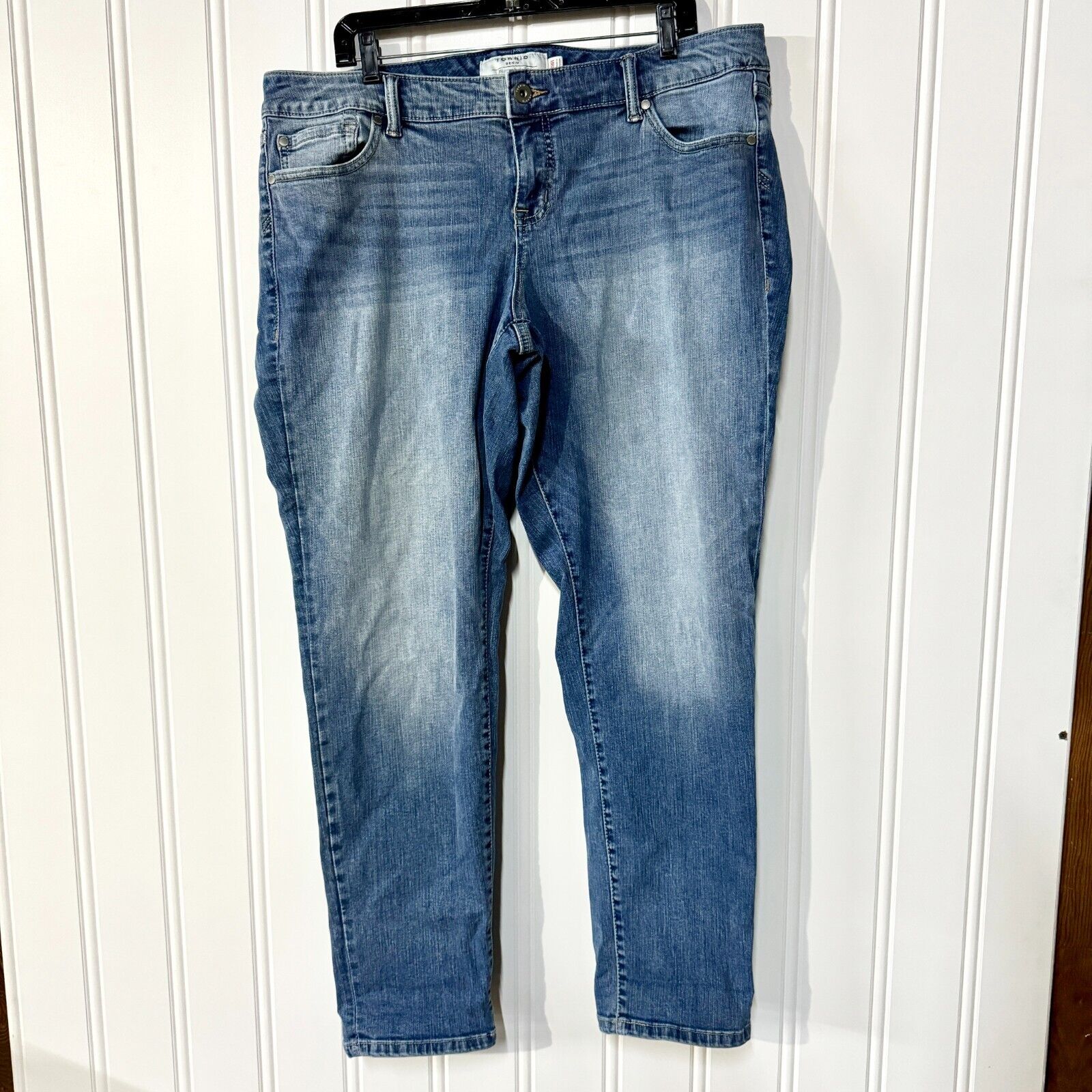 TORRID Jeans Women Size 18R High Rise Dark Wash Distressed Capris 5 Pocket trendy, plus-size, cropped, stretch, casual, versatile, flattering, durable, comfortable, fashionable