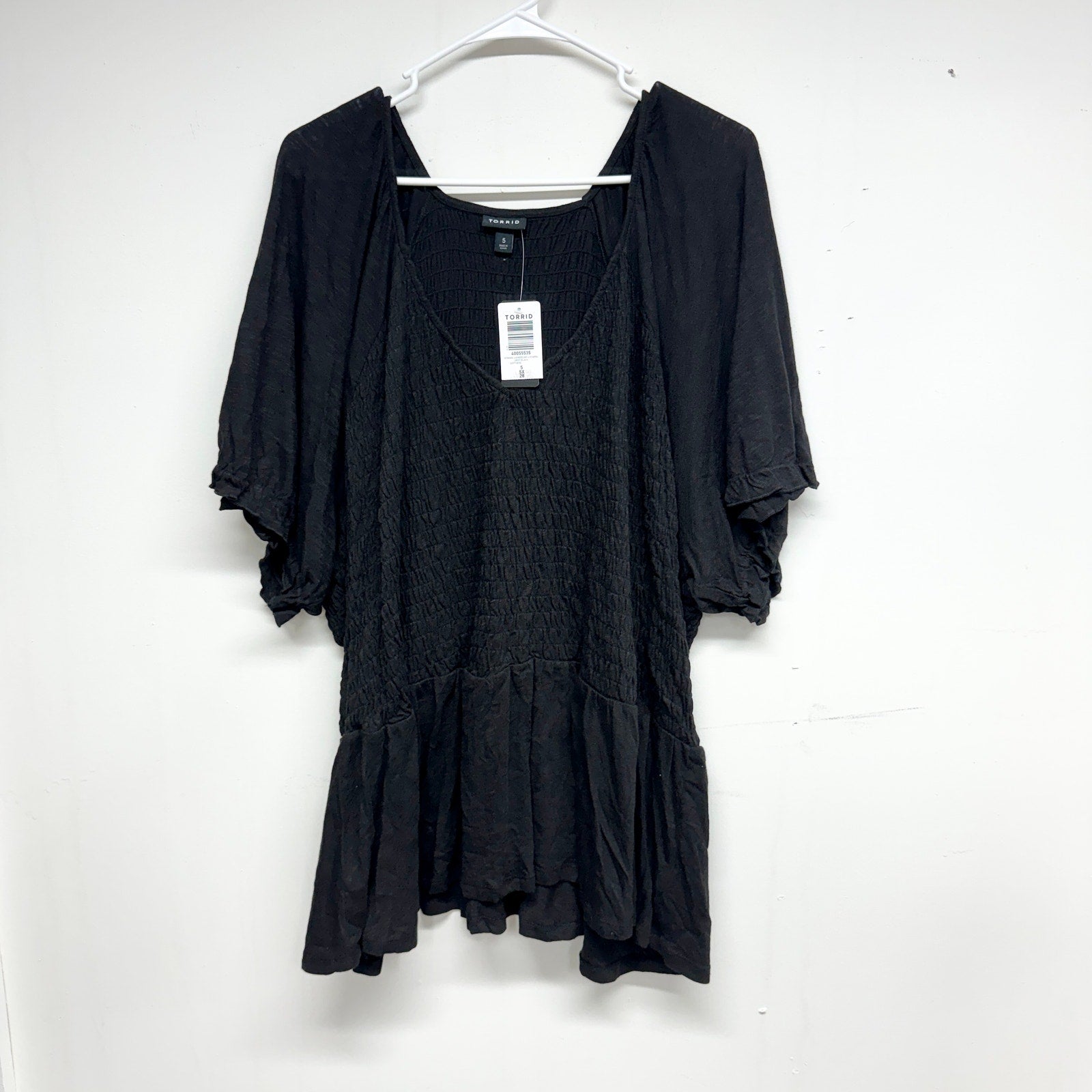 Torrid Womens Black NWT Stretch Ruffle Sleeve Short Sleeve Blouse Size 5X