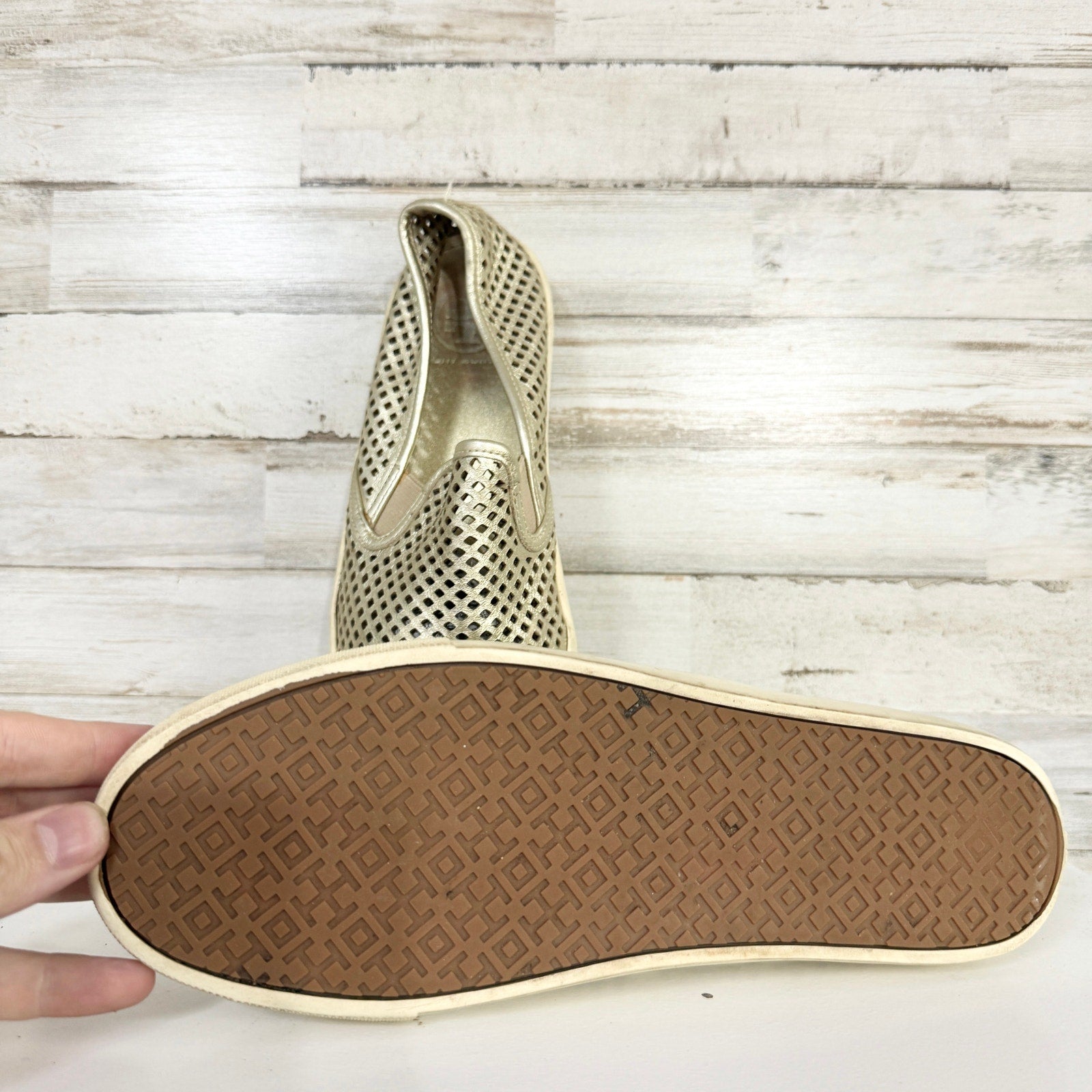 Tory Burch Women Jesse Gold Metallic Leather Perforated Slip On Sneaker Size 8.5