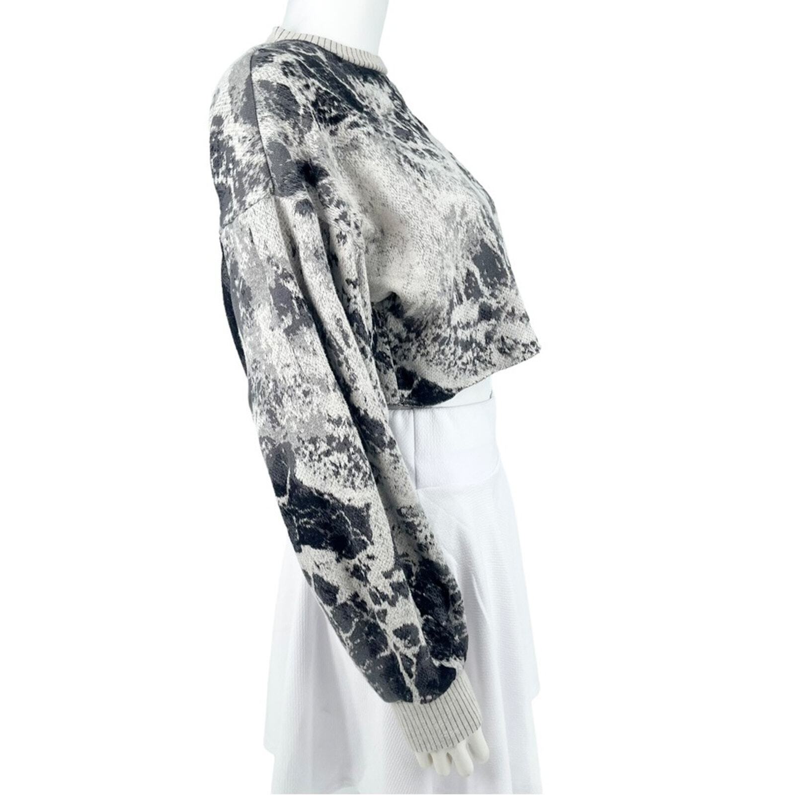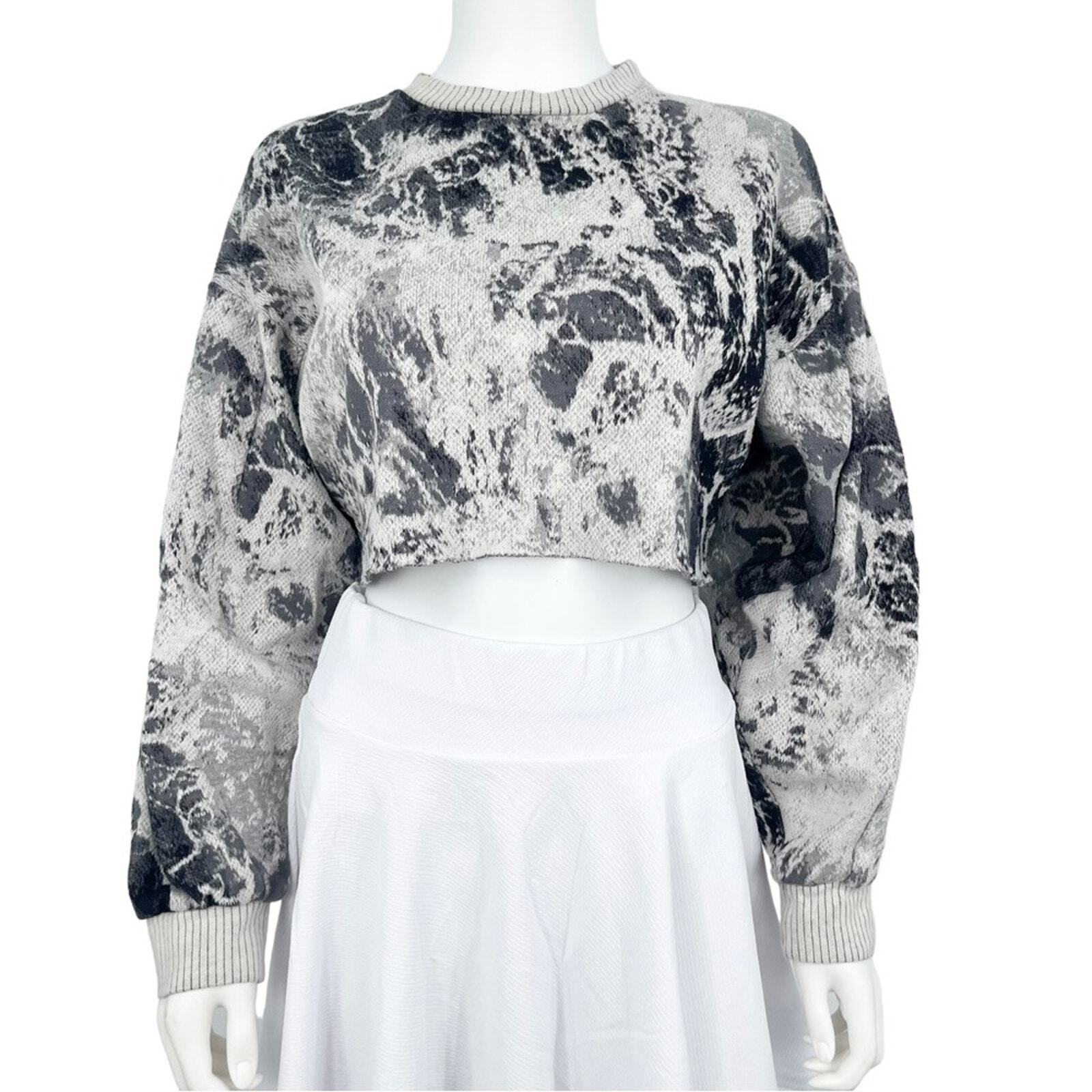 TWENTY Sweater Women Size Medium Cropped Athletic Marble Long Sleeve Crewneck Trendy Casual Top Comfortable Fit Soft Fabric Stylish Workout Wear Fashionable Athletic Sweater Lightweight Design Versatile Activewear Perfect for Layering Modern Look