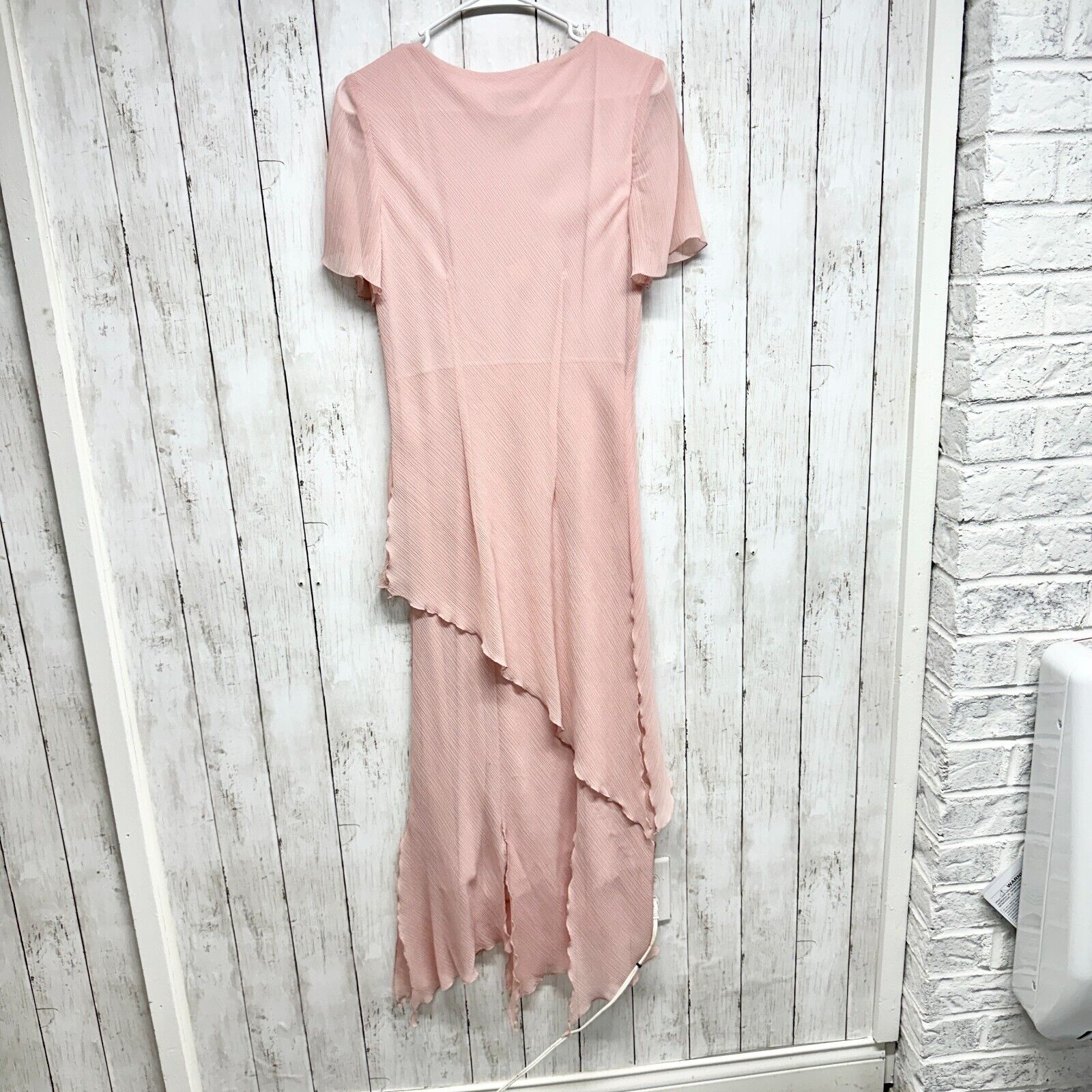 ULTRA DRESS Maxi Women Size 8 Pink Abstract Asymmetrical Deep V Neck Sheer