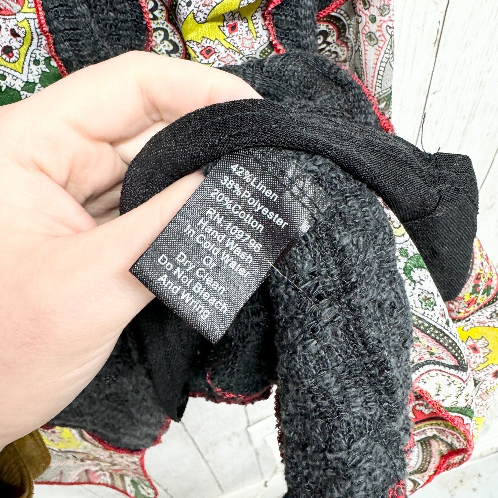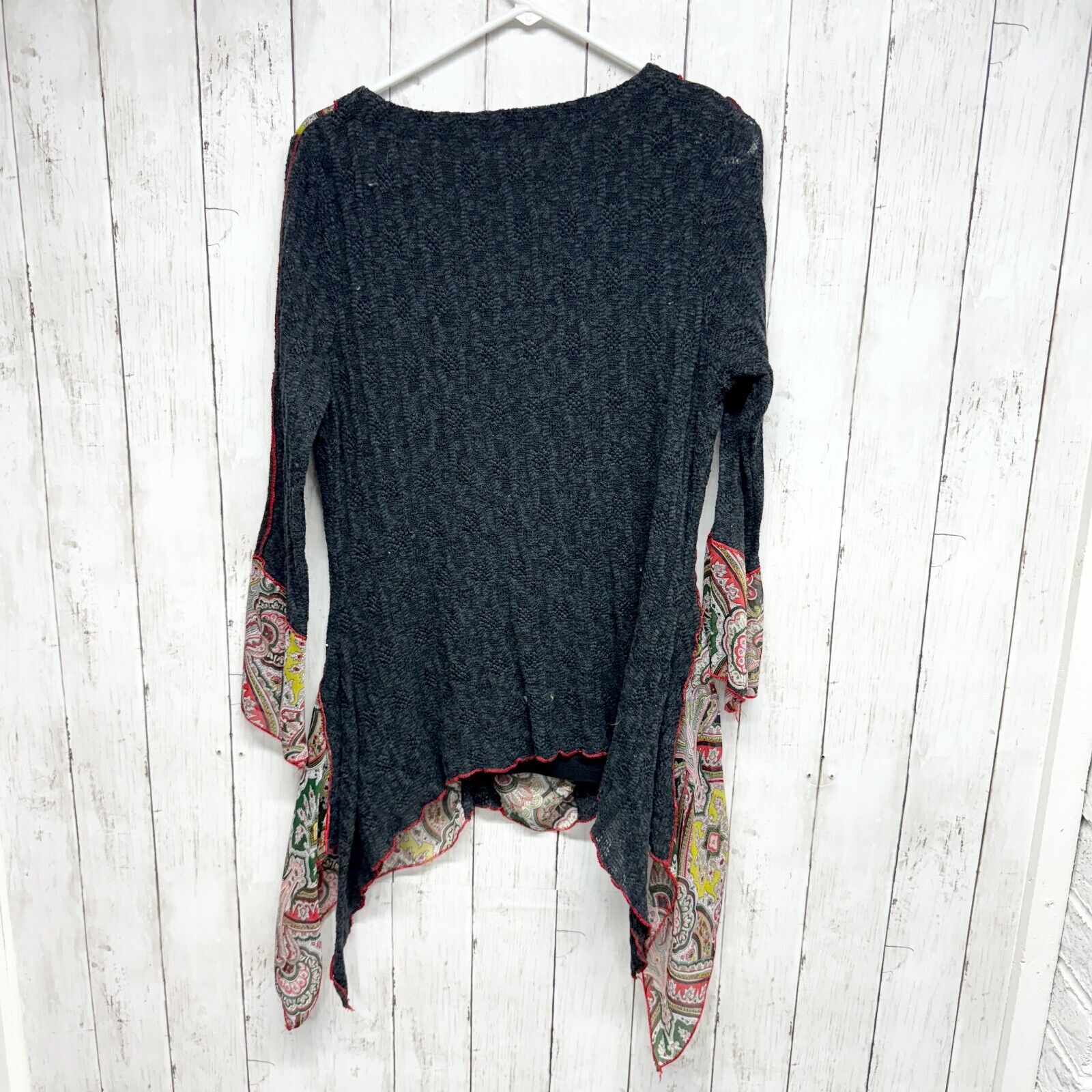 UNKNOWN Blouse Women Sz M High Low Long Sleeve Deep B Floral Paisley Multicolor