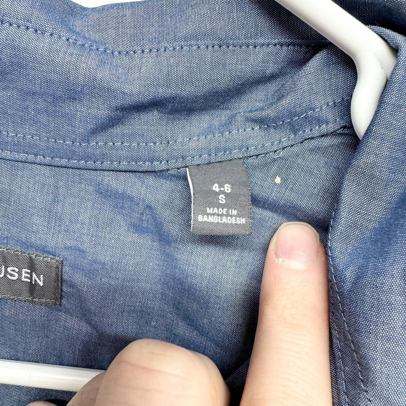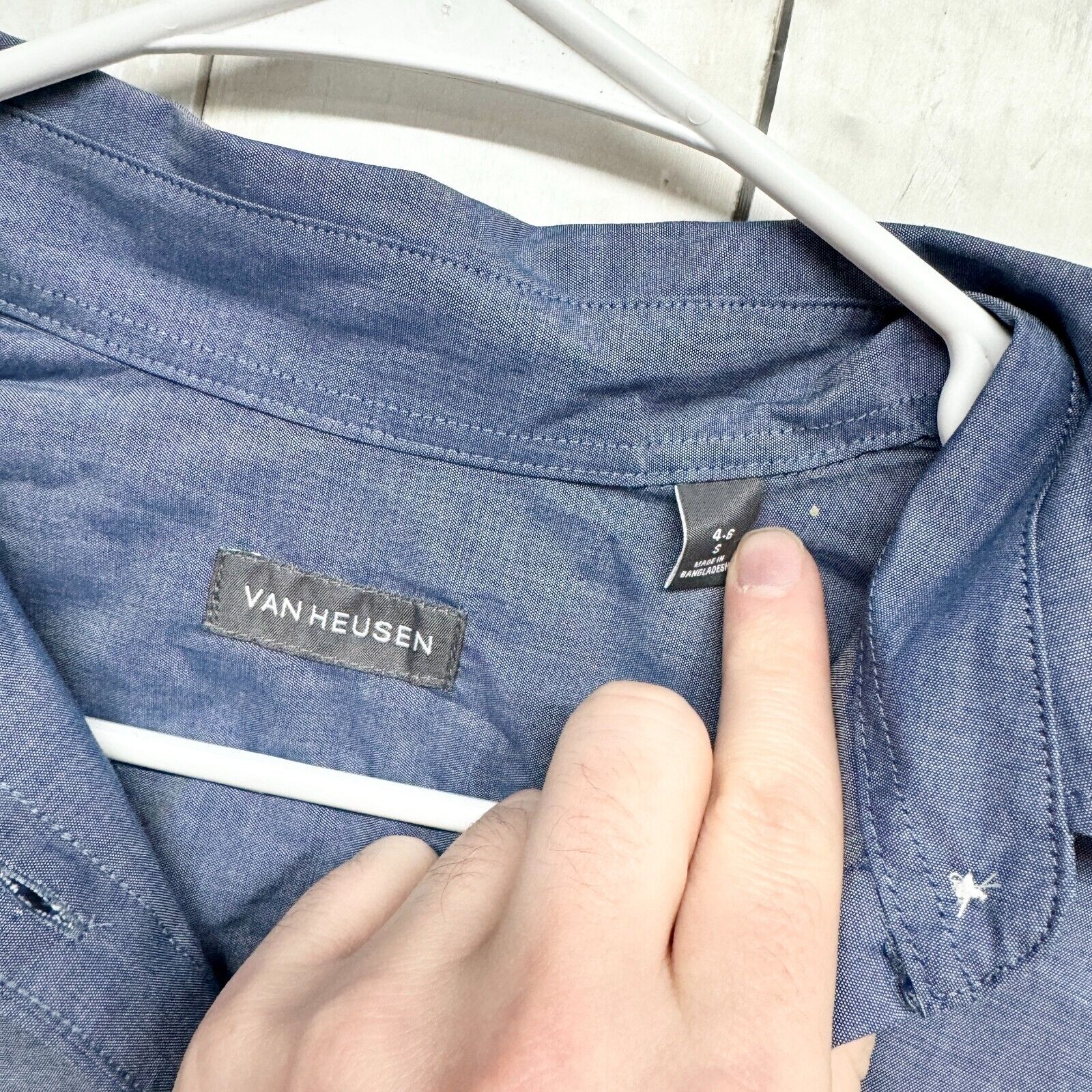 VAN HEUSEN Button Up Women Size S 4-6 Blue Long Sleeve Cotton Spread Collar