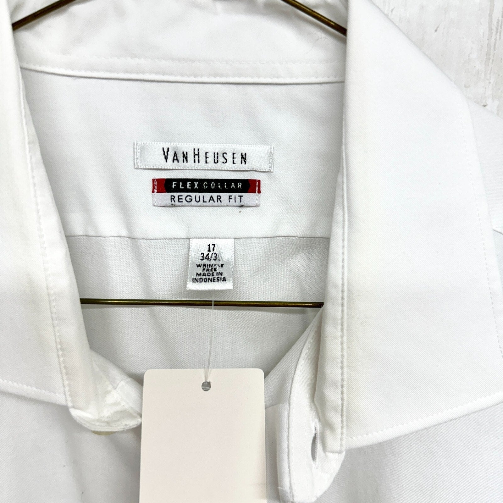 Van Heusen Shirt Men Size 17 34/36 Regular Fitting White Flex Collar Button Down