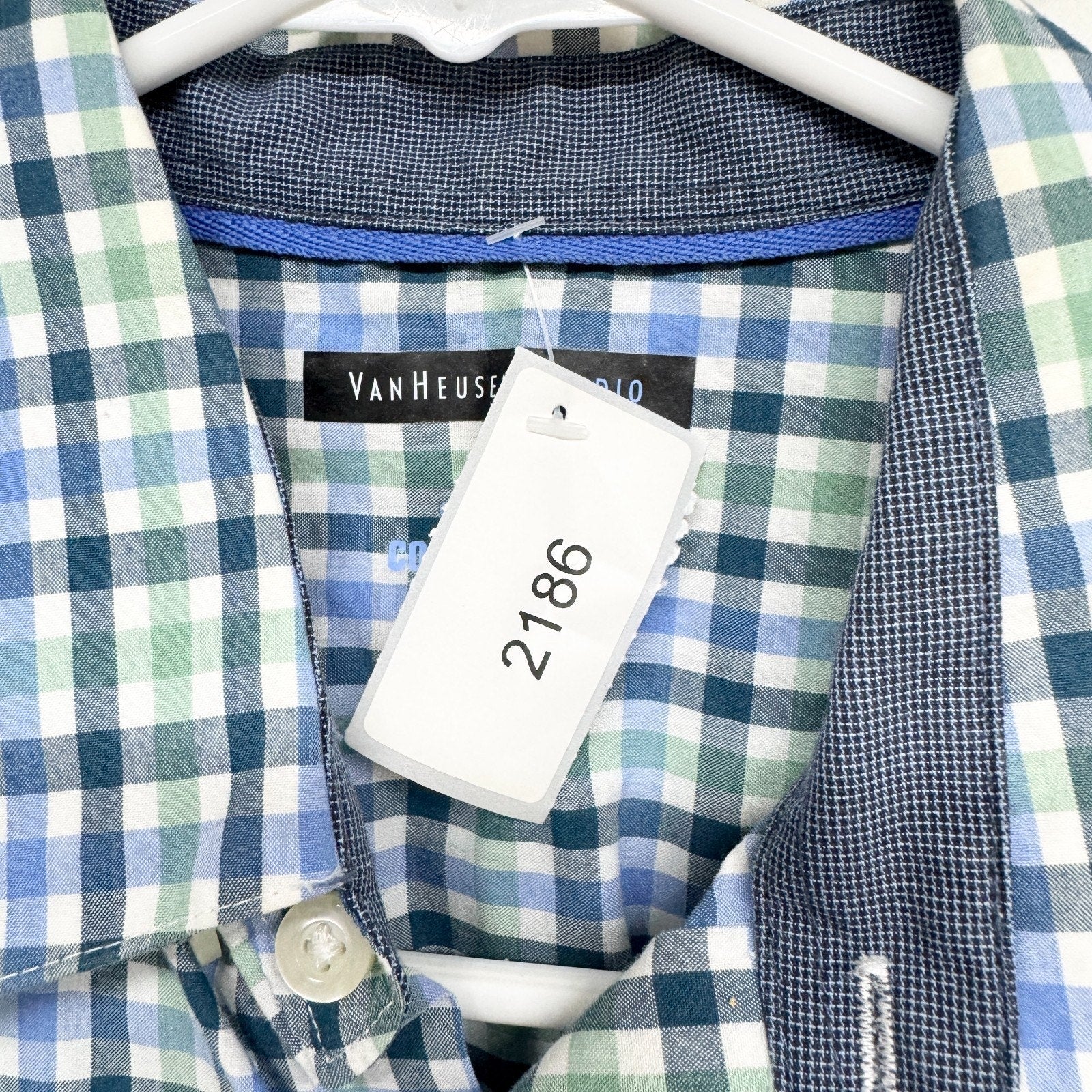 Van Heusen Shirt Men Size Small Slim Fit Collared Plaid Long Sleeve Button Down