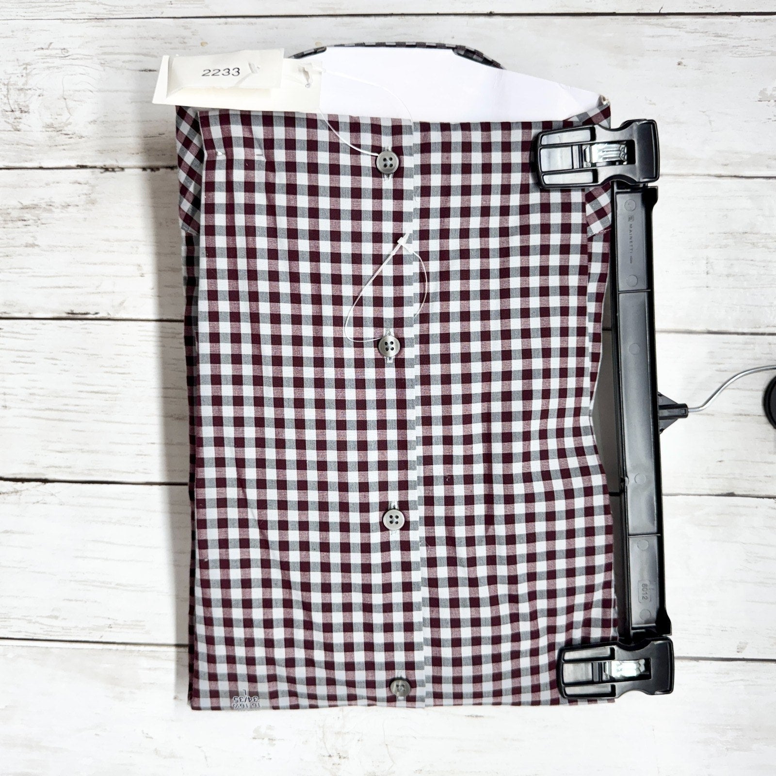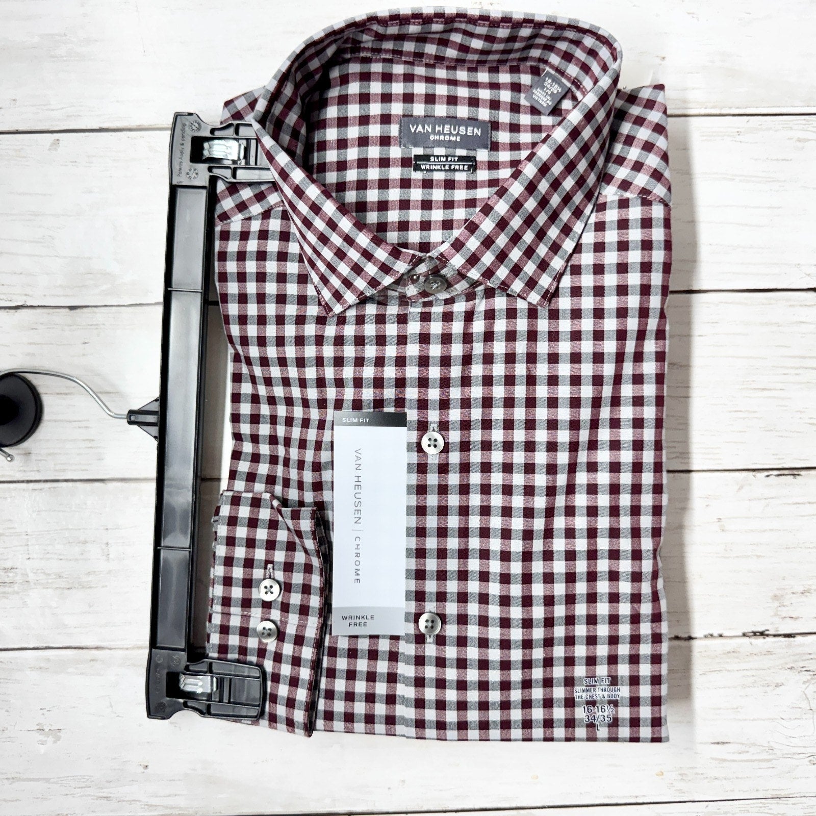 Van Heusen Top Men Size Large Chrome Slim Fit Plaid Collared Button Down Shirt