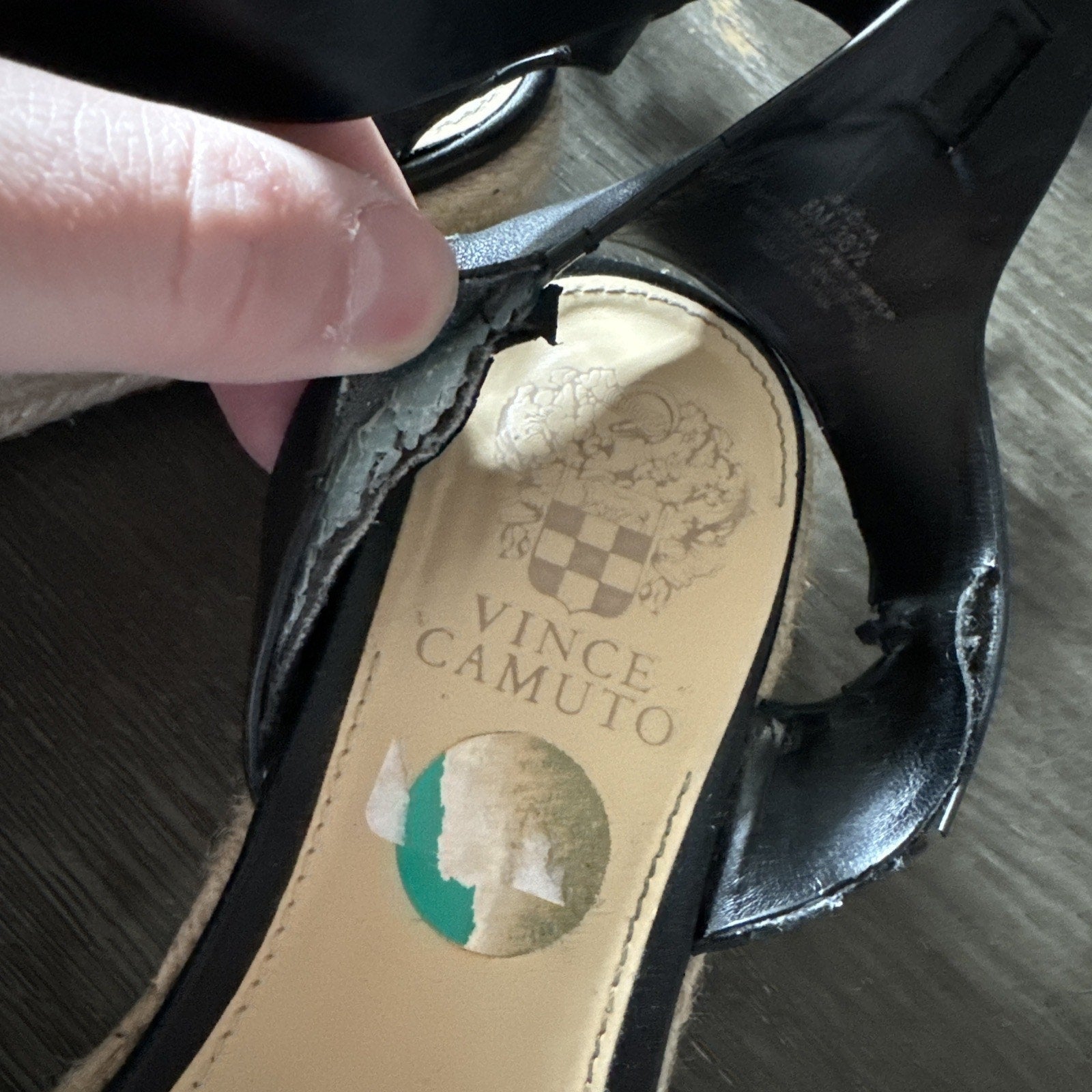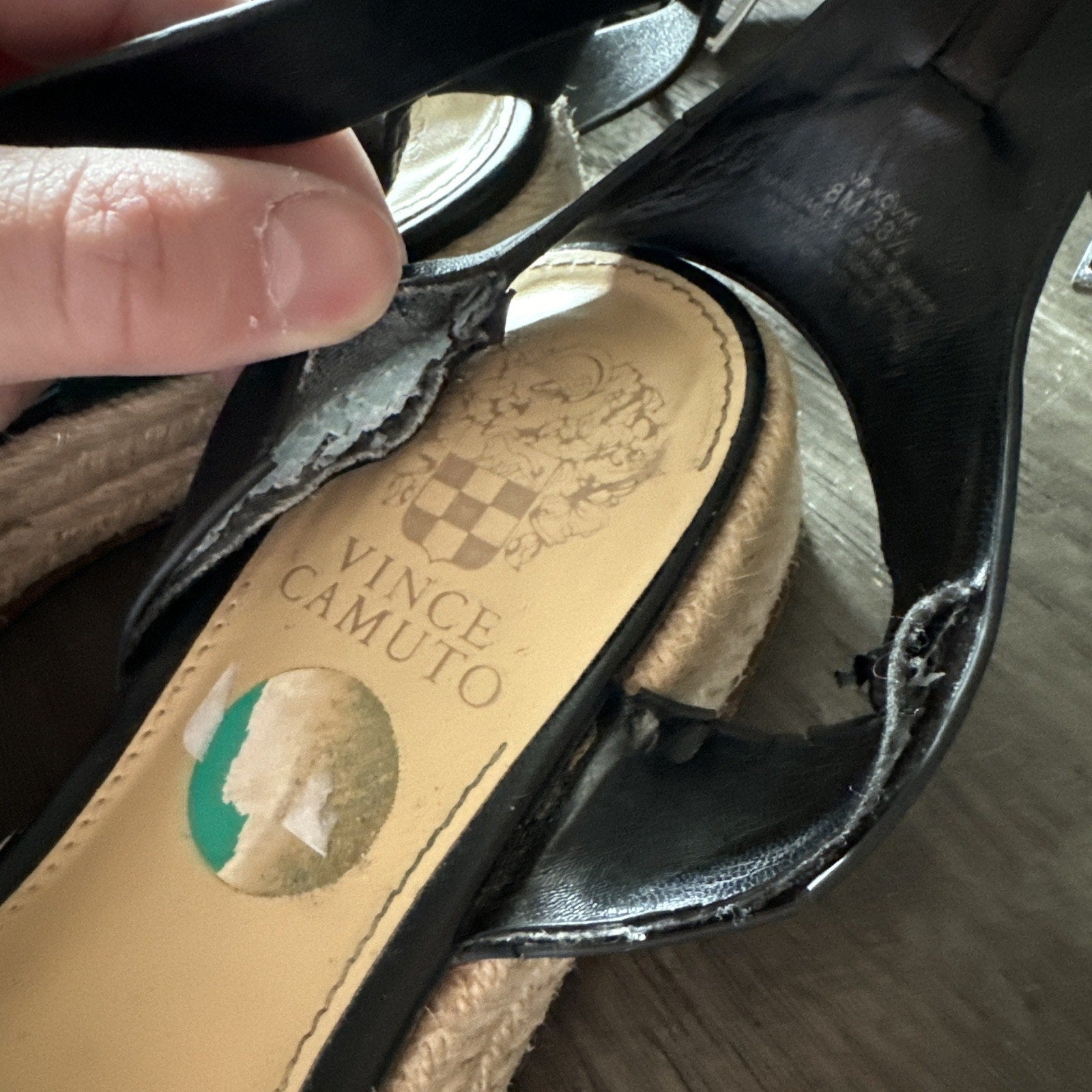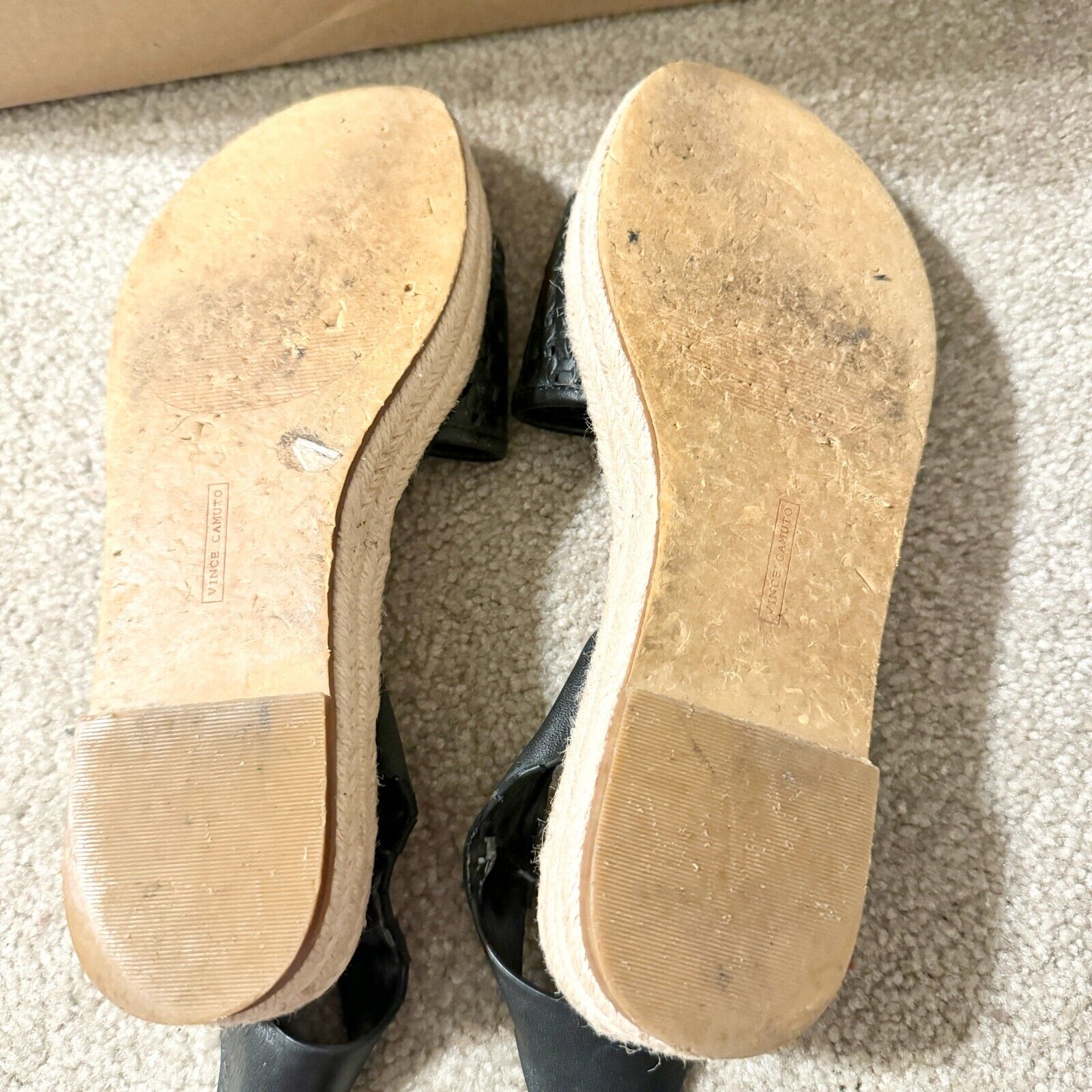 VINCE CAMUTO Women 8 Black Basketweave Espadrille Ankle Strap Platform Sandal