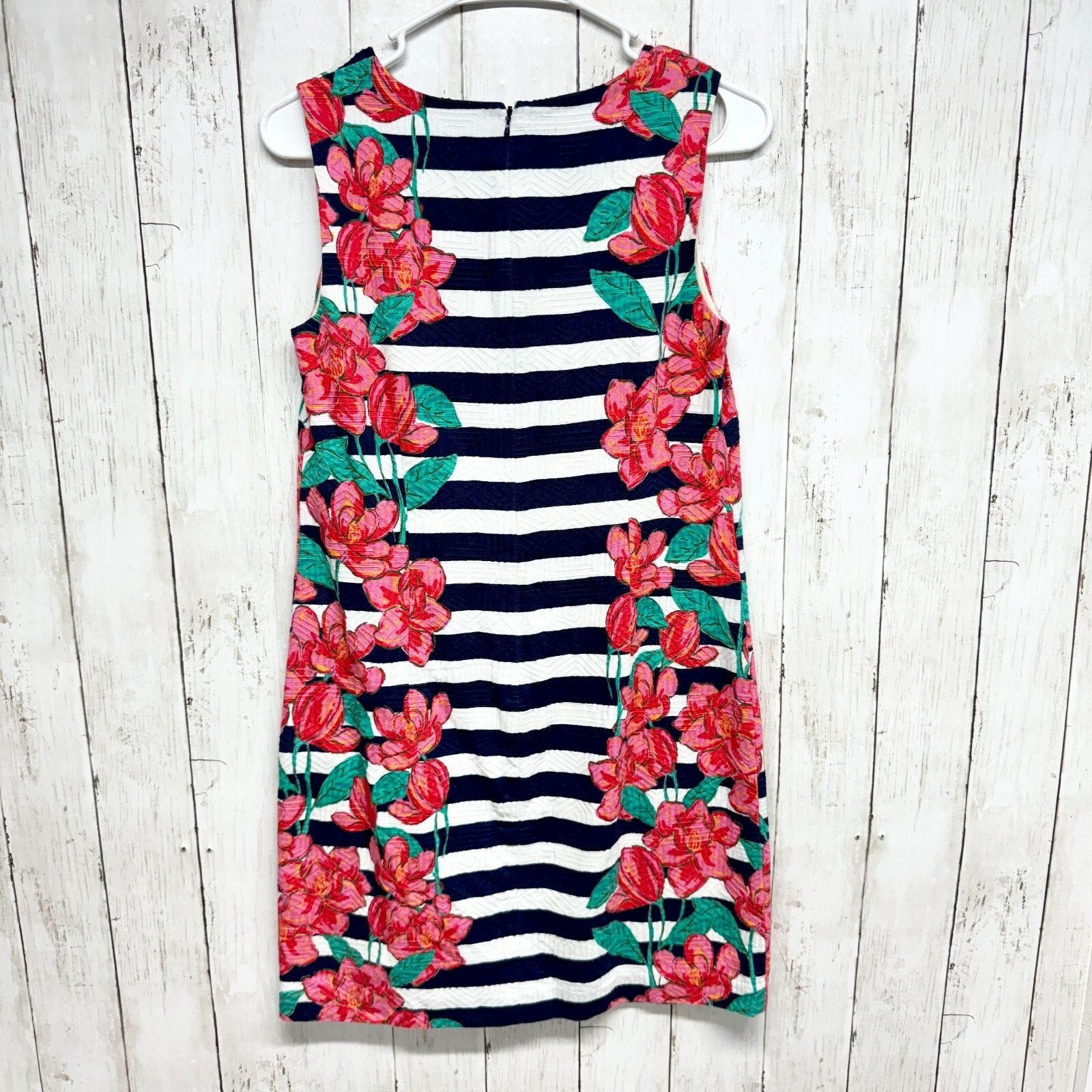 Vineyard Vines Size 0 Magnolia Striped Sleeveless Shift Dress Bold Flowers Roses