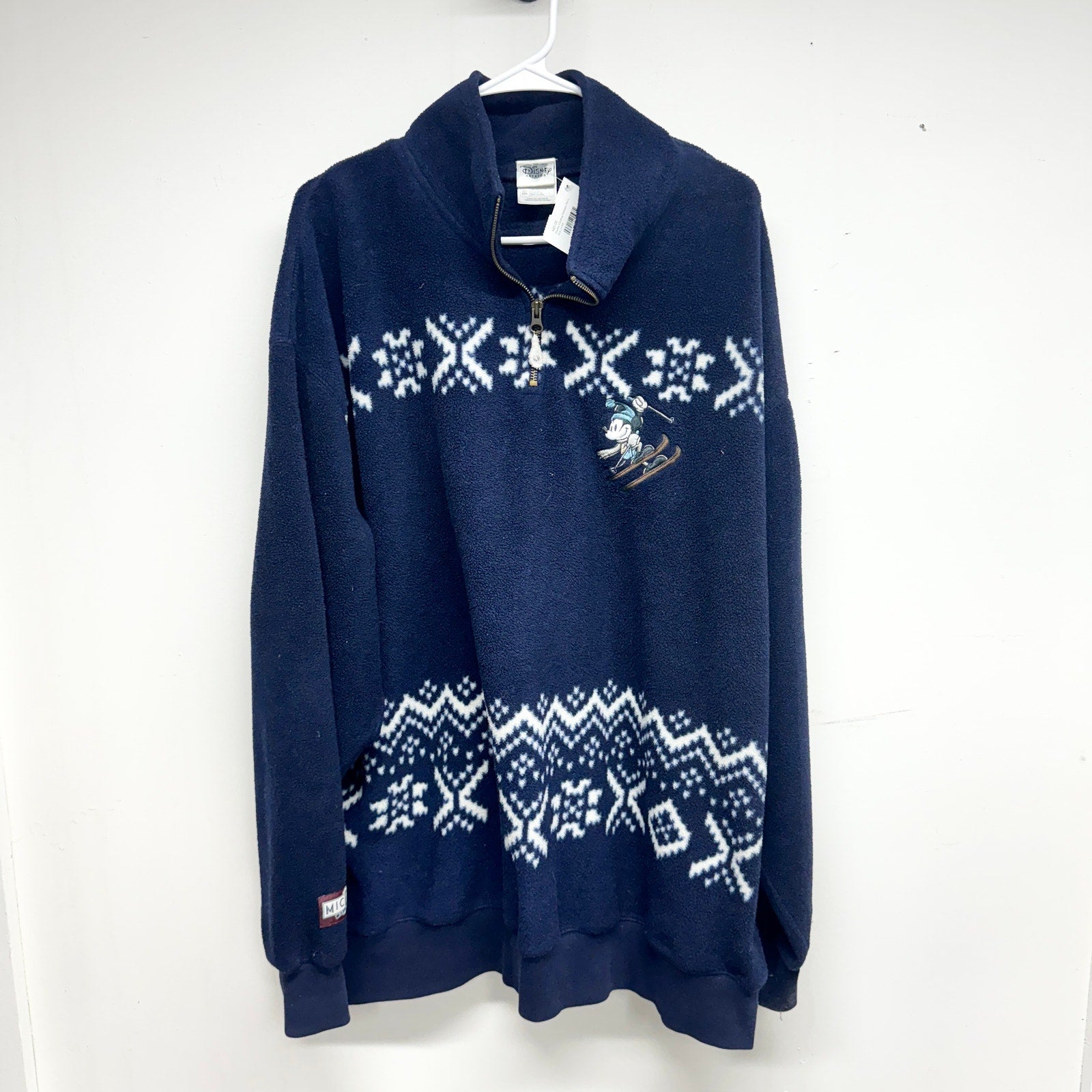 Vintage 2000's Disney Ski Lodge Mickey Skiing 1/4 Zip Fleece Sweatshirt XXL