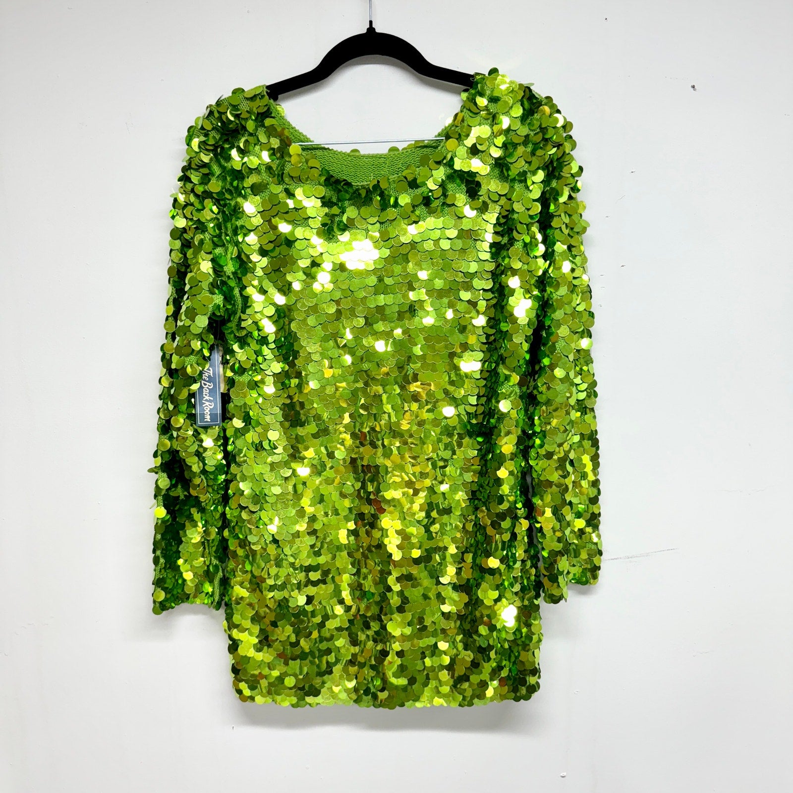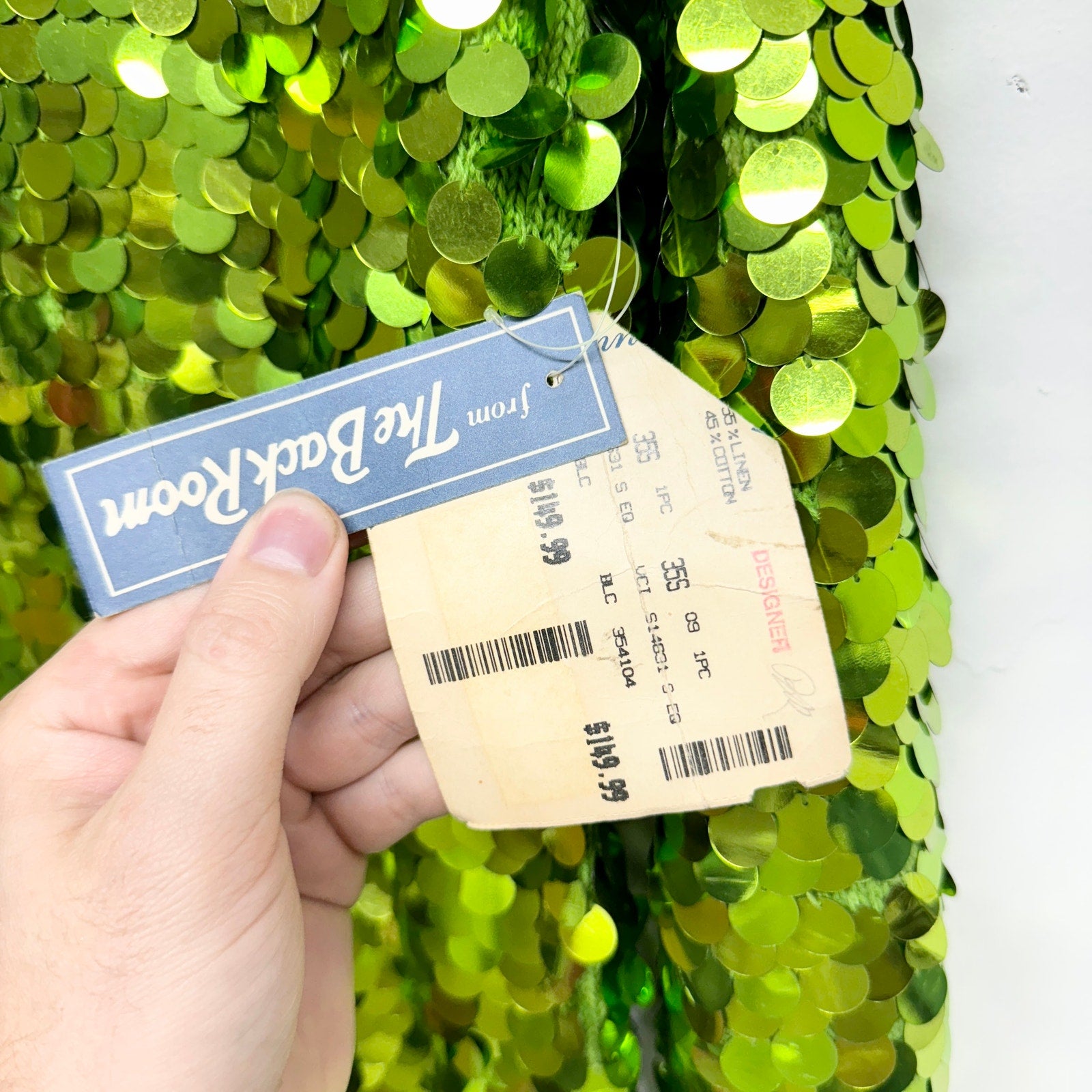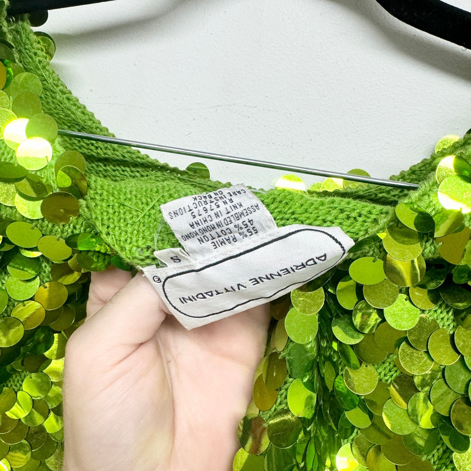 Vintage 80's Adrienne Vittadini Green Long Sleeve Sequin Top Size Small NWT