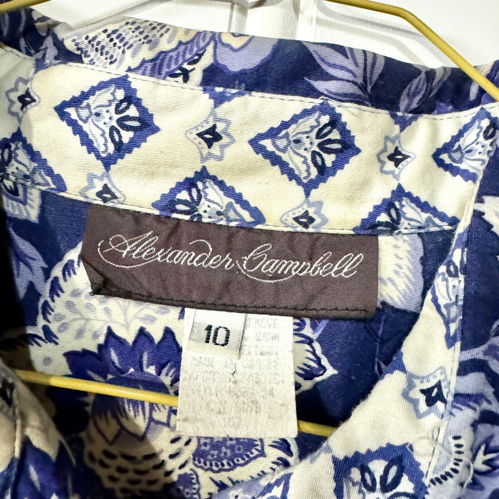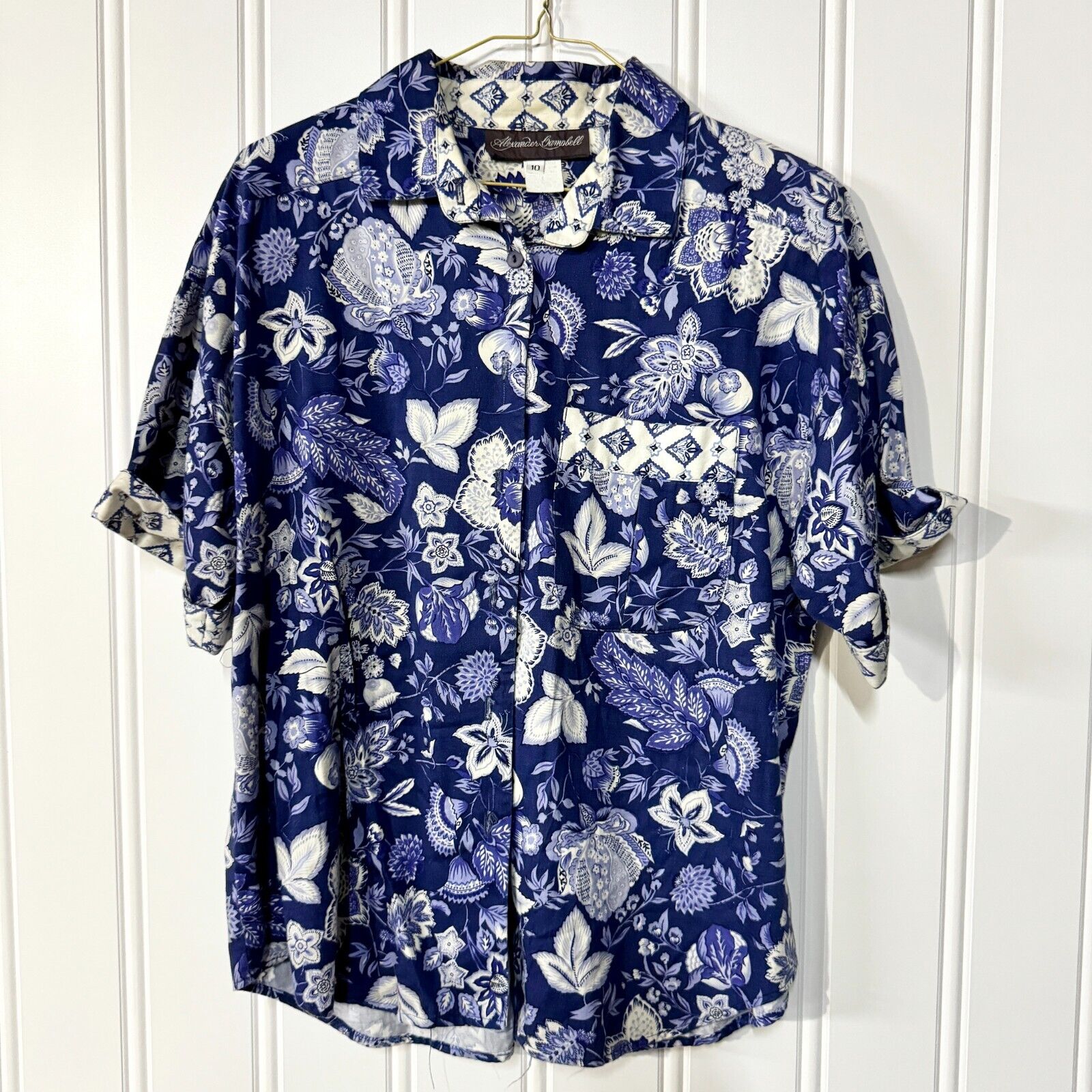 VTG Alexander Campbell 2 Piece Blue Button Down Top & Skirt Set Floral Collared Vintage, Elegant, Stylish, Feminine, Timeless, Classic, Flattering, Coordinated, Trendy, Sophisticated, Comfortable, Chic, Unique, Versatile, Statement Piece, Breezy, Lightweight, Floral Print, Effortless
