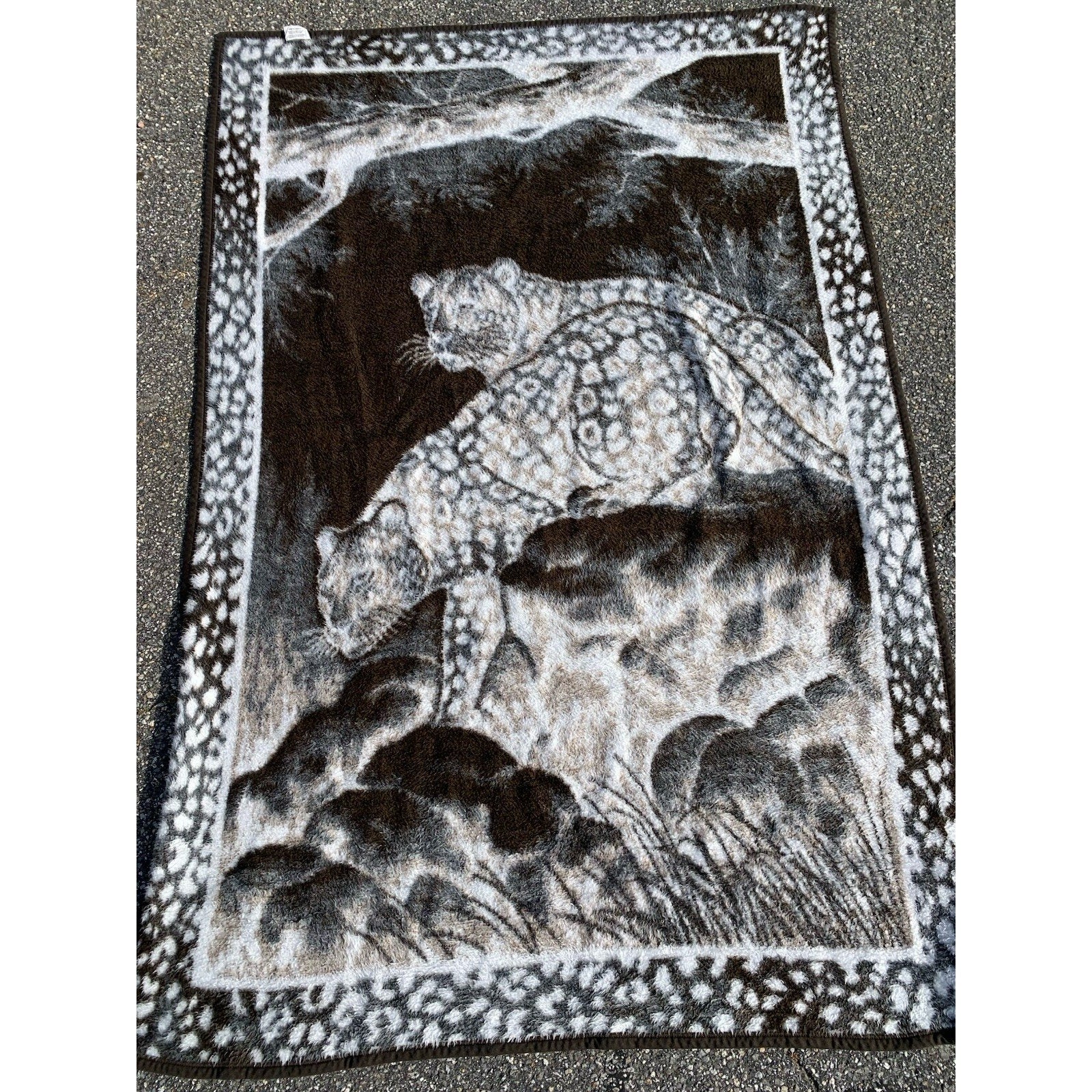 Vintage Biederlack Fleece Blanket Cheetah Tiger Reversable 80 x 54 Made in USA