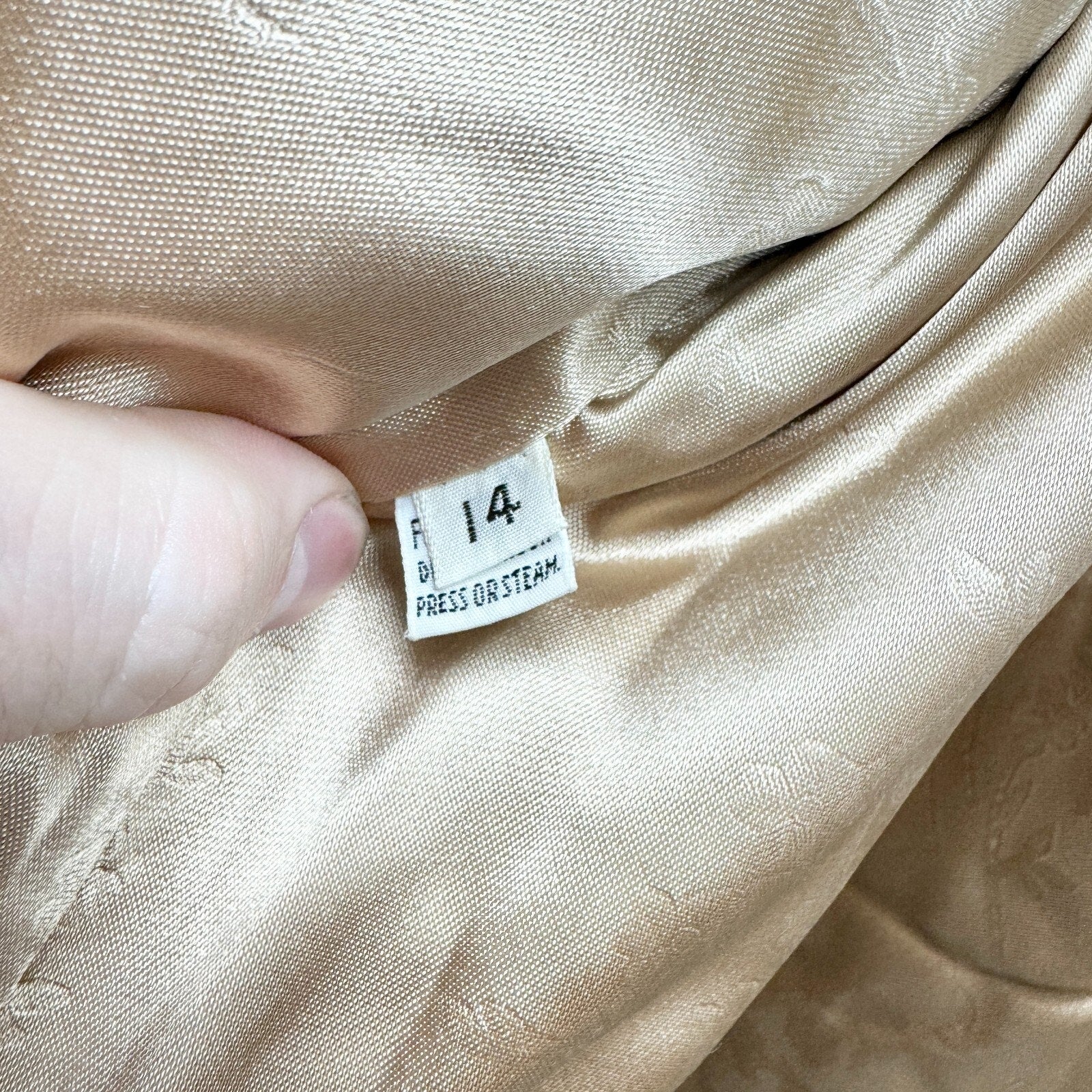 To ensure the best fit, kindly compare the measurements in the pictures with a similar piece that you know fits well. Sizes can differ by brand, possible alterations, and/or garment care.
