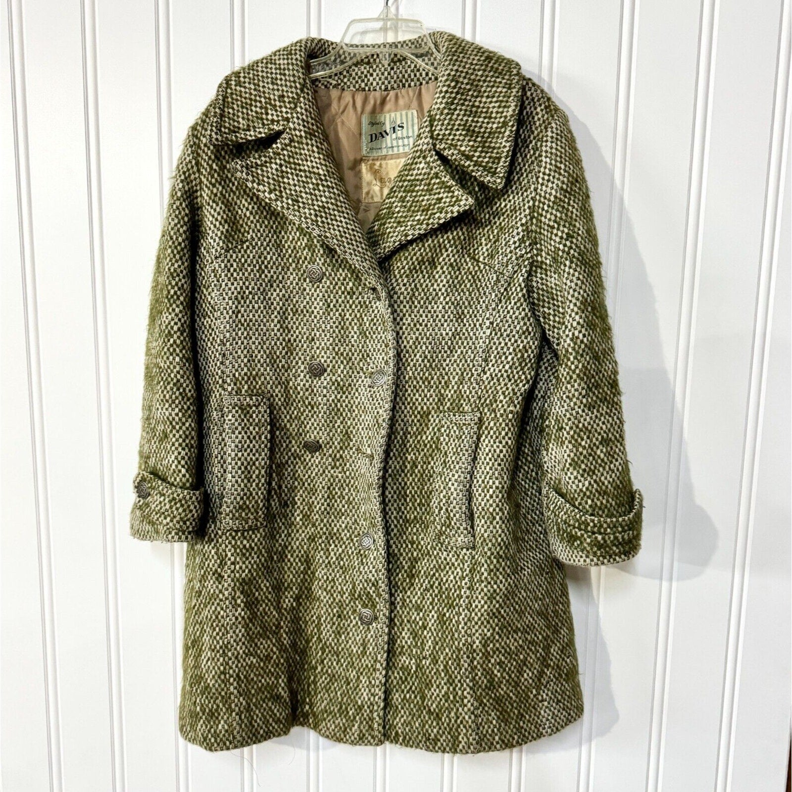 Vintage DAVIS OF BOSTON LAZAROUS Pea Coat Women Green Woven Double Breasted