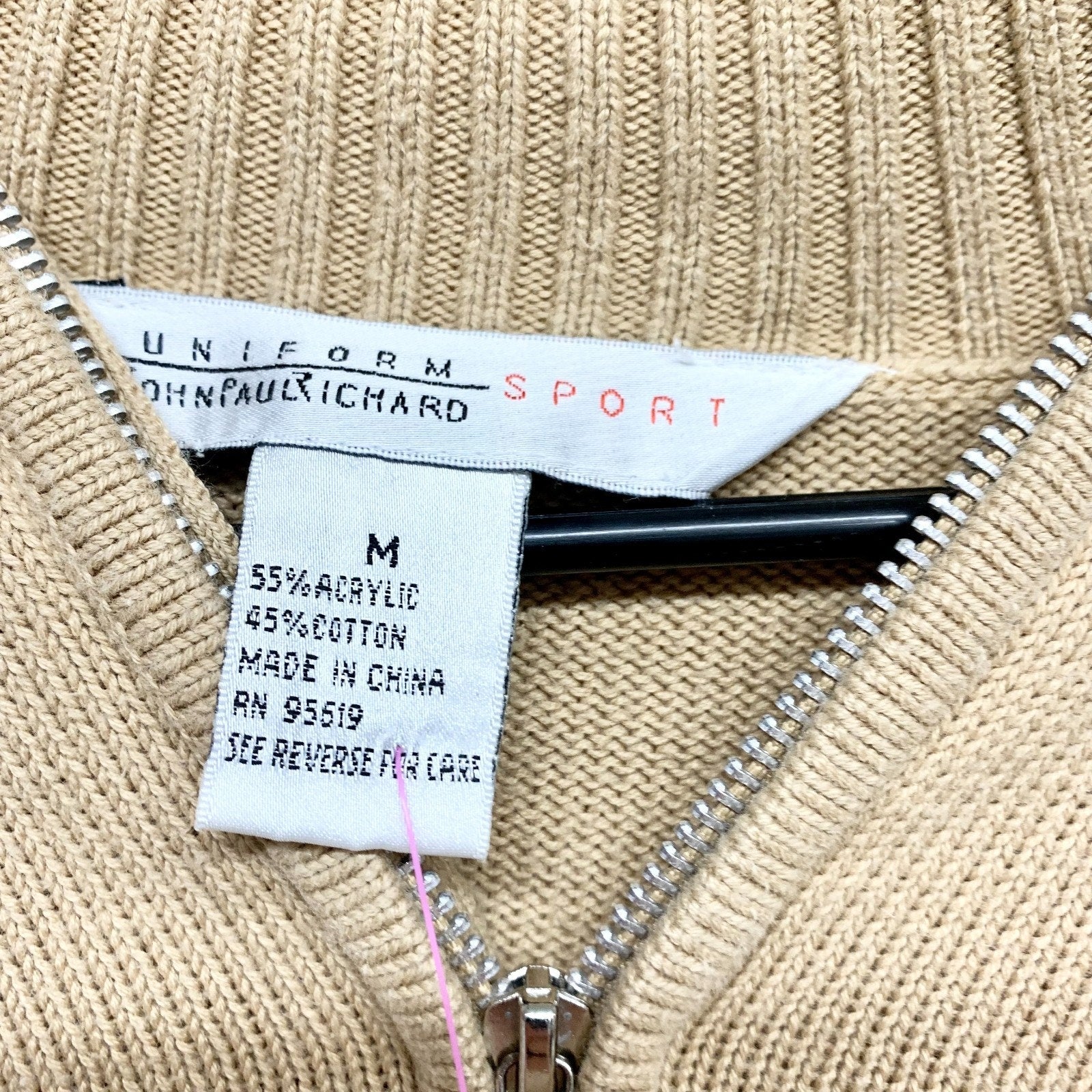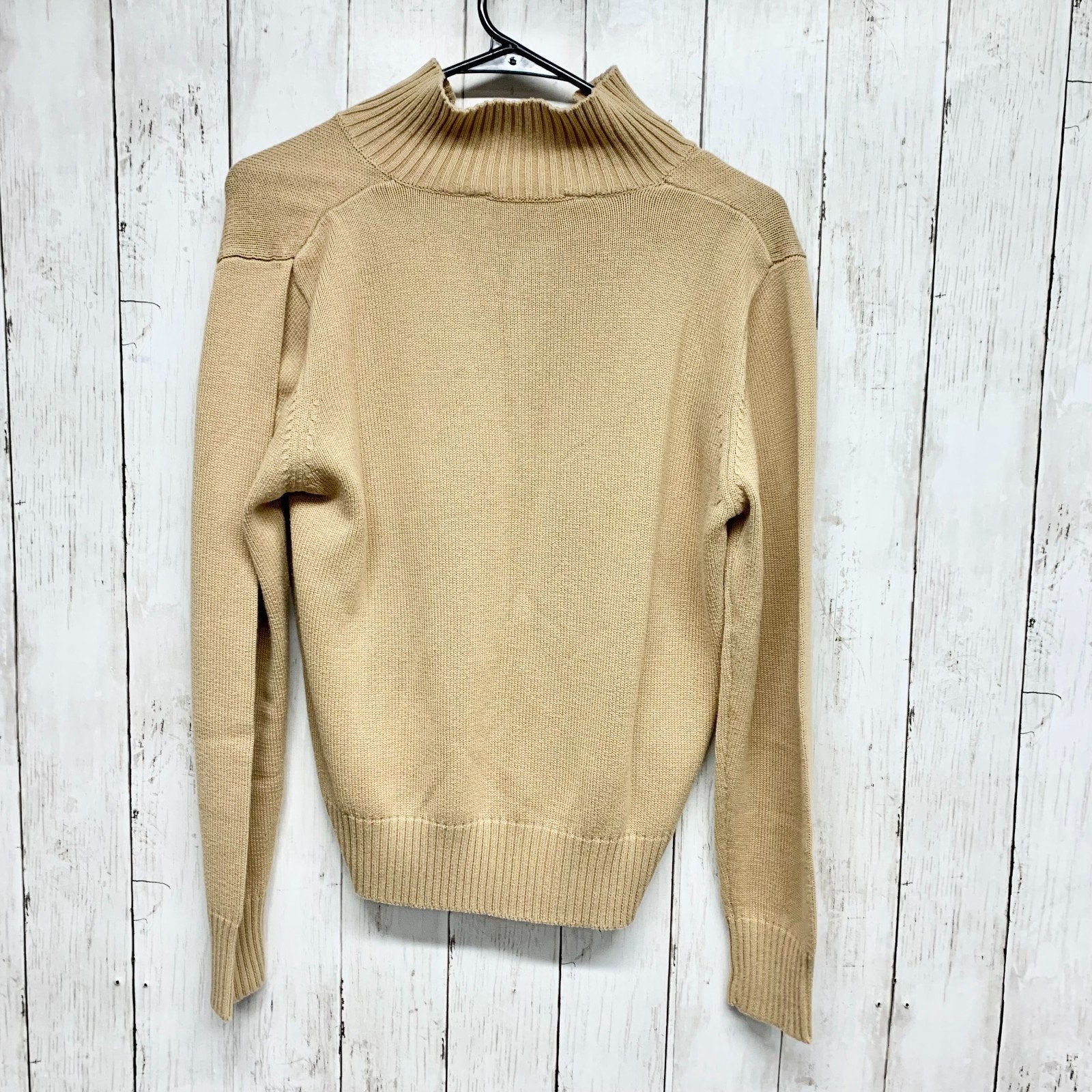 Vintage John Paul Richards Sweater Women Size Medium Tan Quarter Zip Long Sleeve