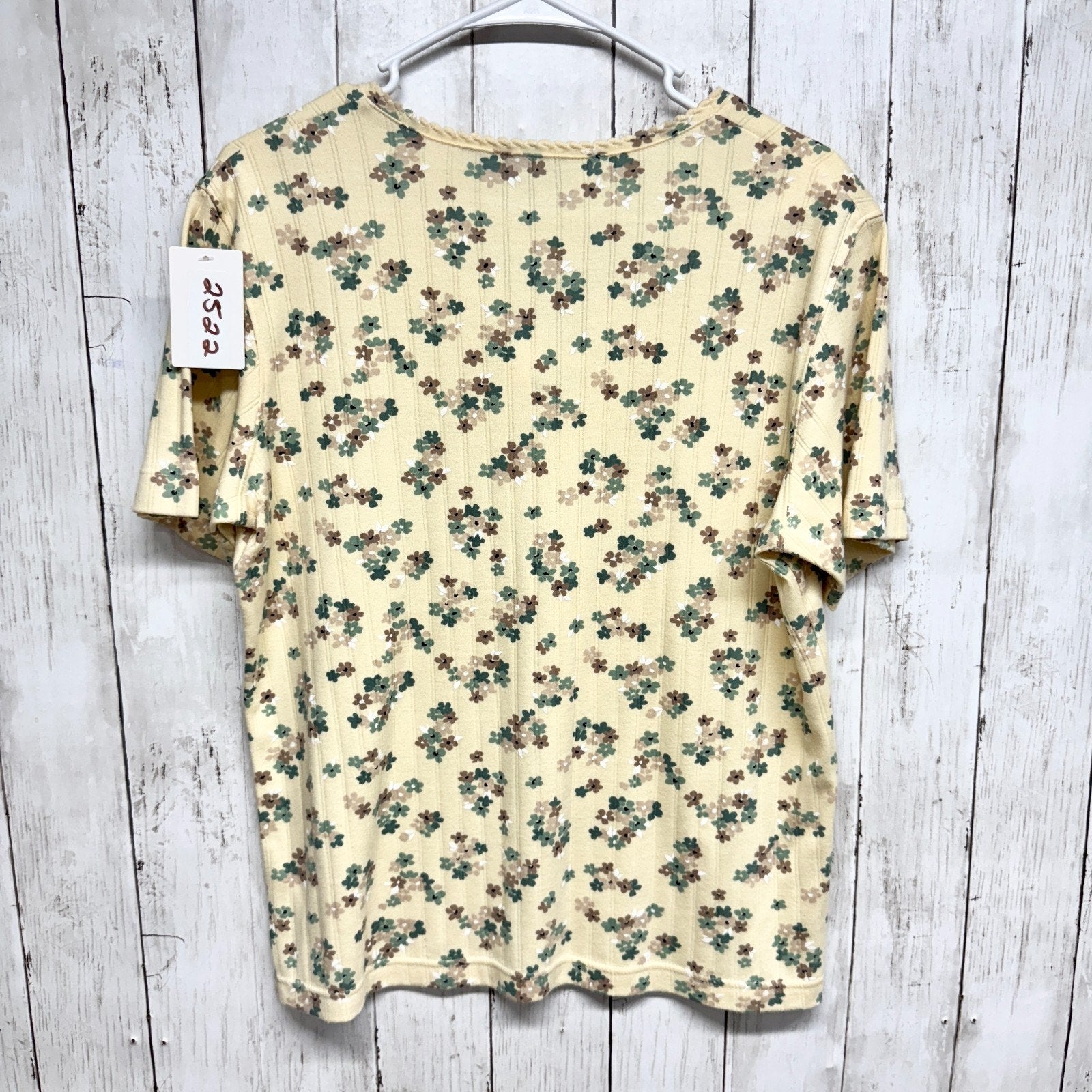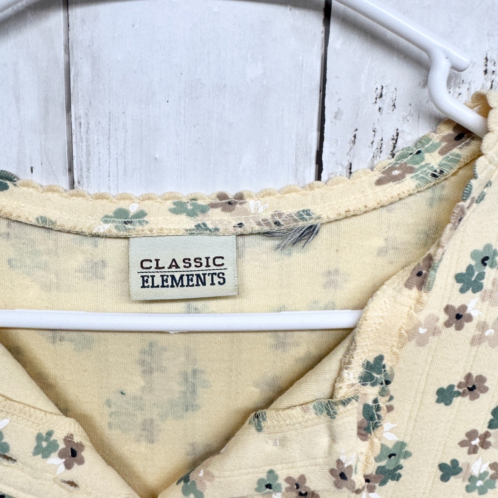 Vtg Classic Elements Top Women 41" Chest Yellow Floral Short Sleeve Polo Shirt