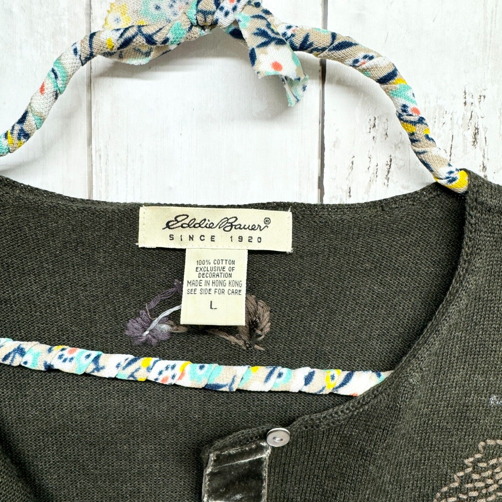 VTG EDDIE BAUER Shirt Women Size L 100% Cotton Cottage Muss Green Button Down