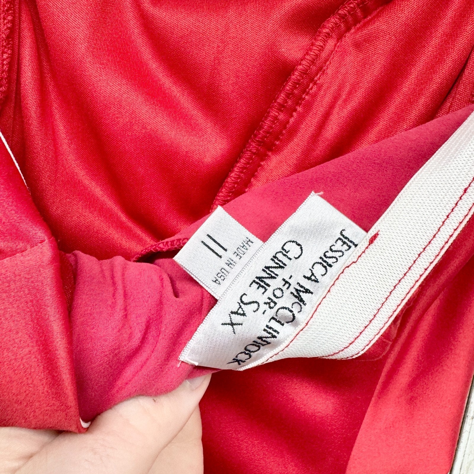 Vtg Jessica McClintock Gunne Sax Dress Women Size 11 Red Ruched Strapless Mini