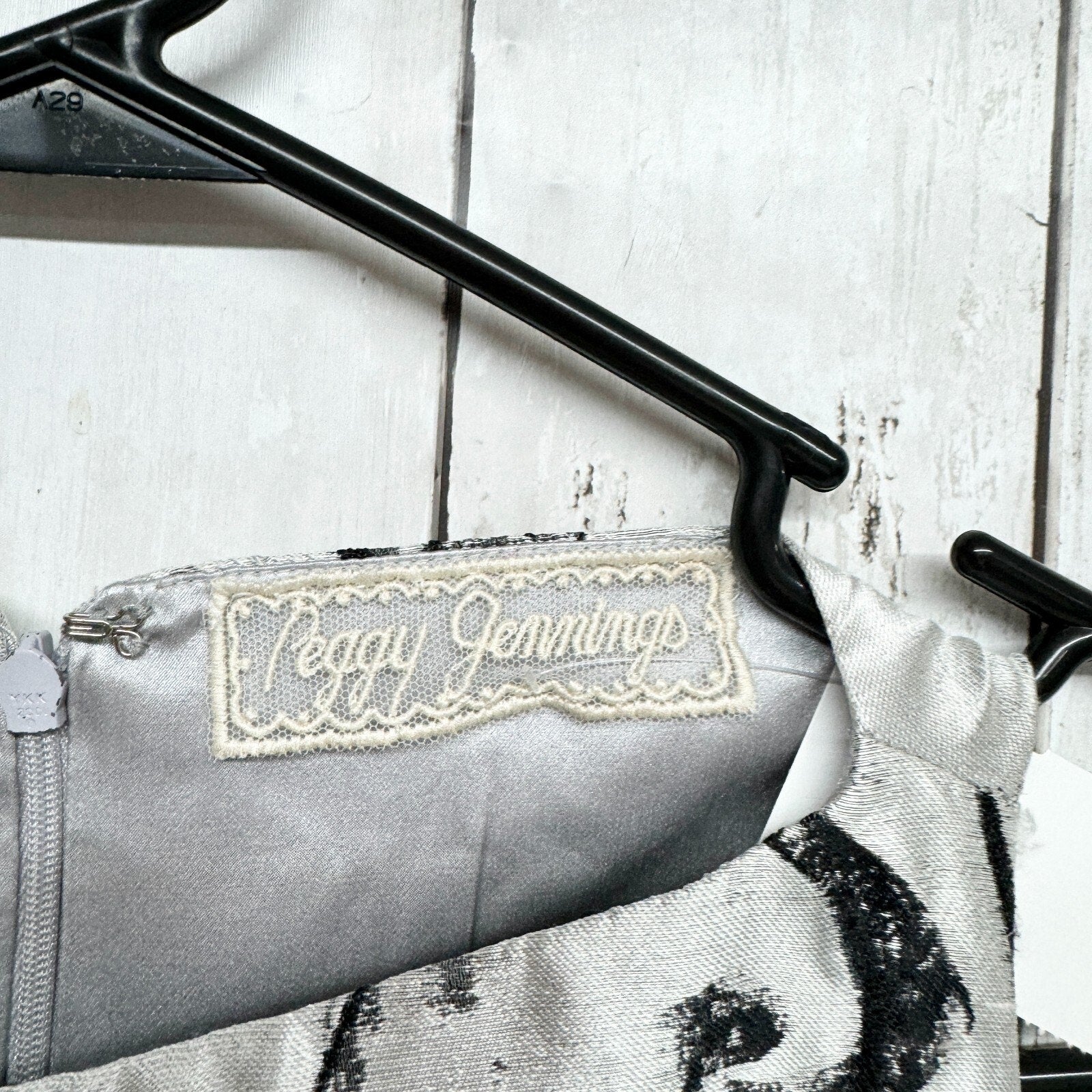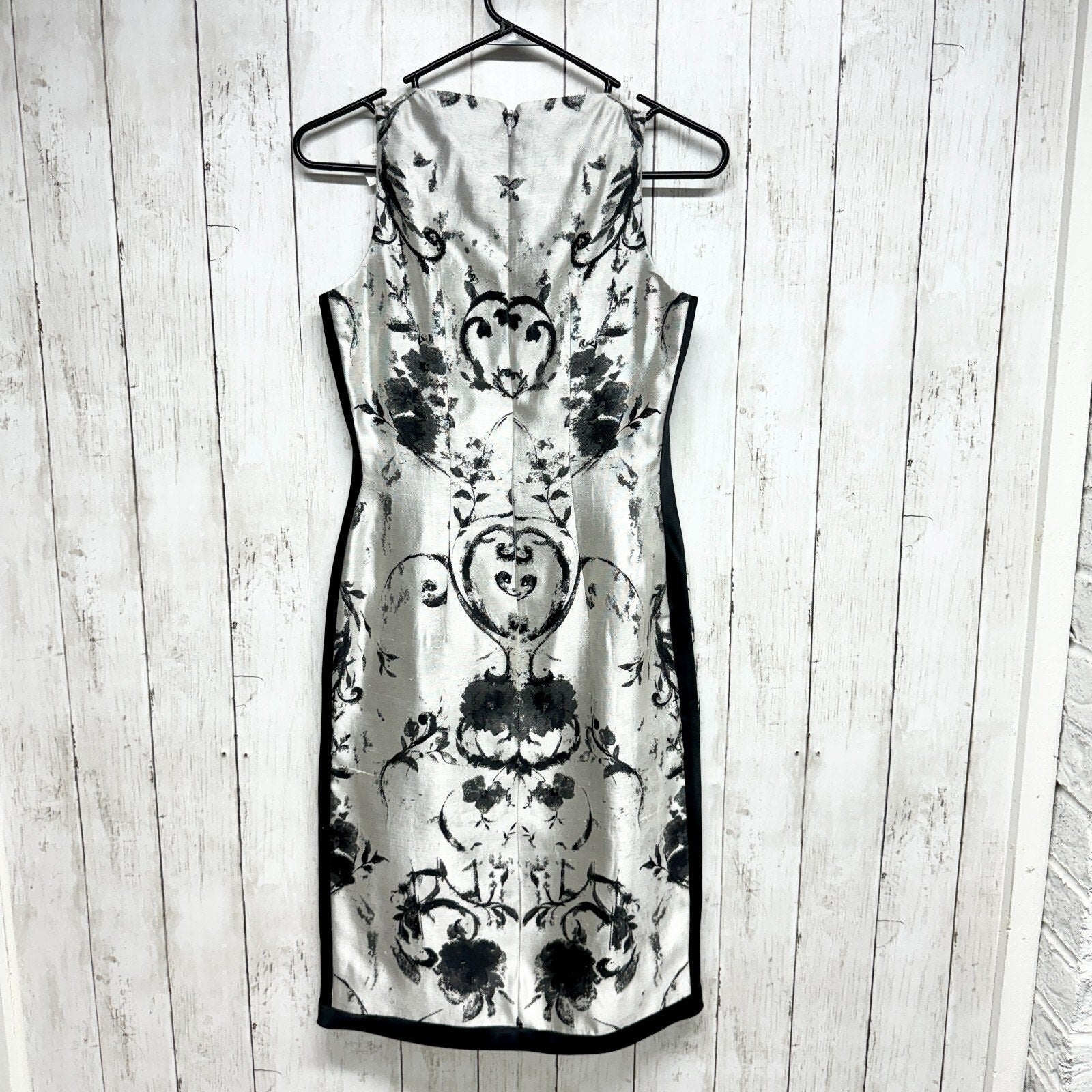 VTG PEGGY JENNINGS Dress Women Size Medium Metallic Sleeveless Mini Floral 80s