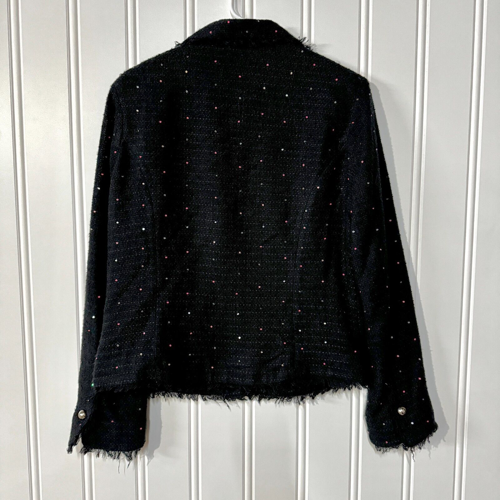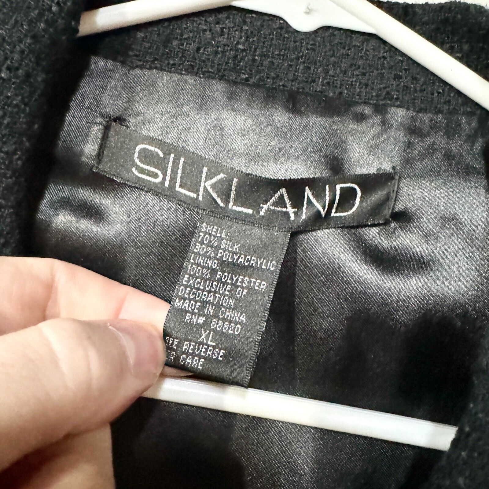 VTG SILKLAND Blazer Women Size XL Knit Lined Speckled 70% Silk Navy Blue Button Vintage, Elegant, Sophisticated, Stylish, Timeless, Feminine, Comfortable, High-Quality, Flattering, Classic, Durable, Unique, Versatile, Tailored, Polished, Structured, Statement Piece, Chic, Formal