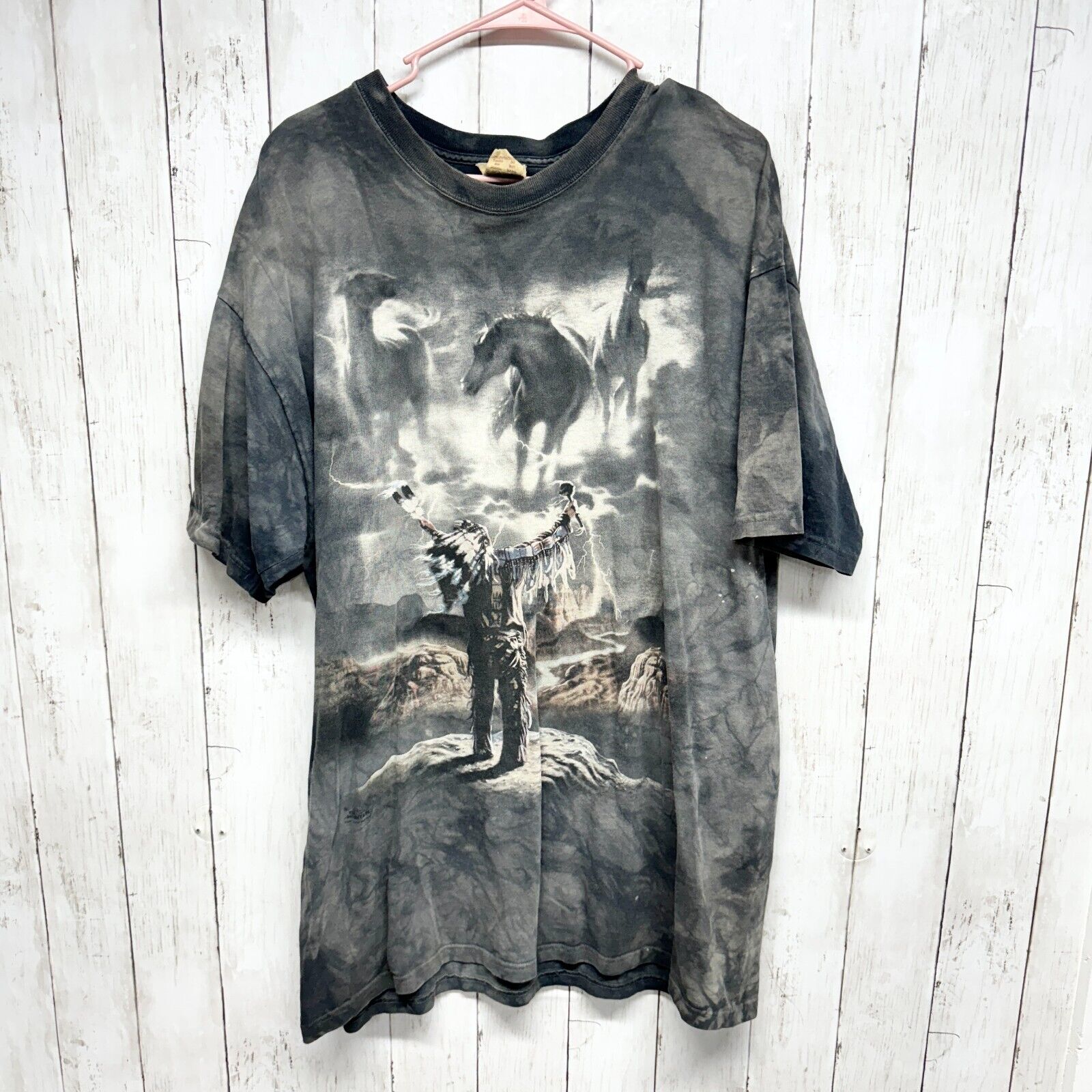 VTG Y2k Mountain XXL Indian Native American Horse Animal Nature Tie Dye T Shirt