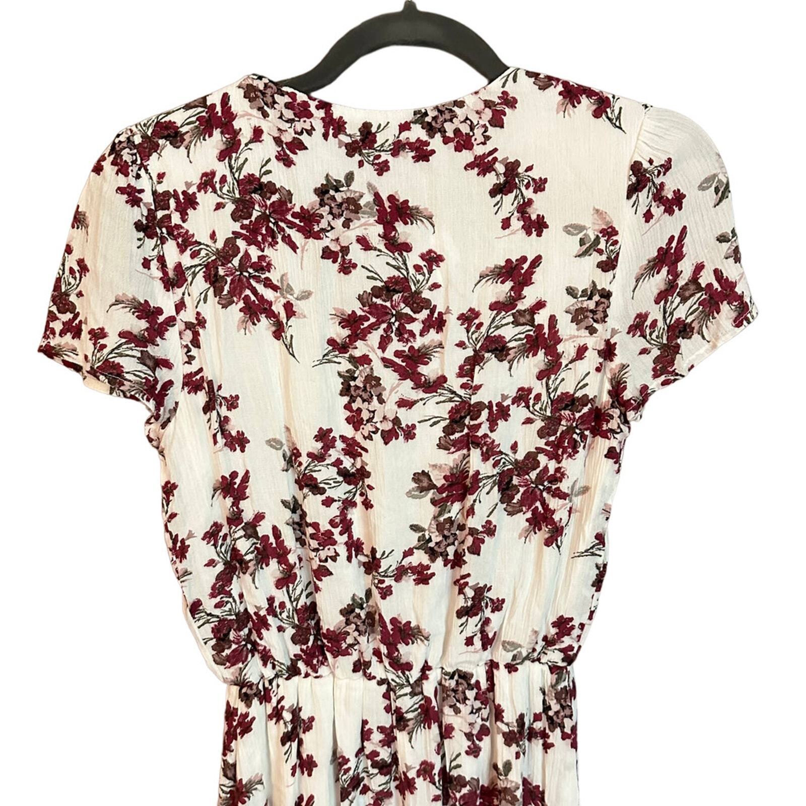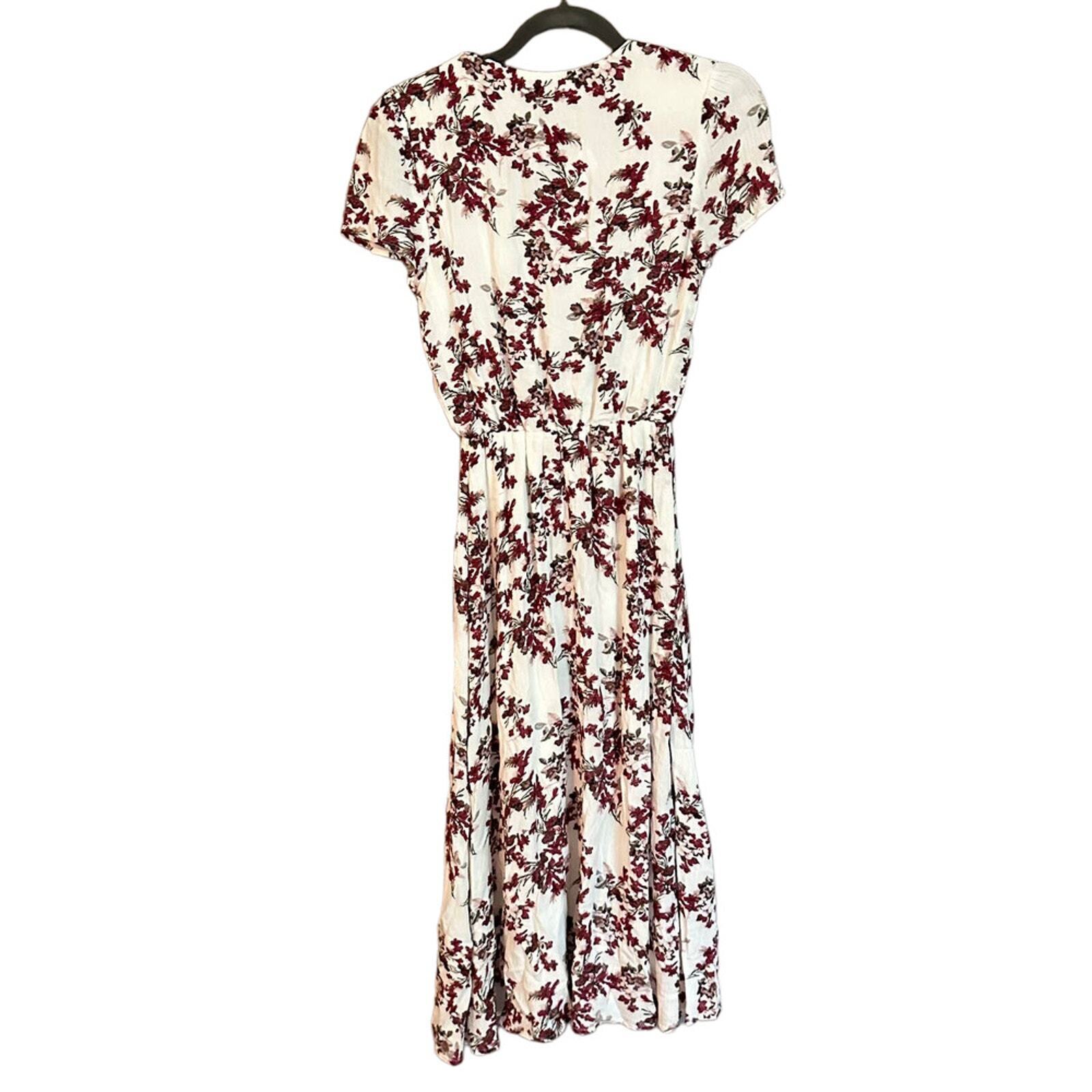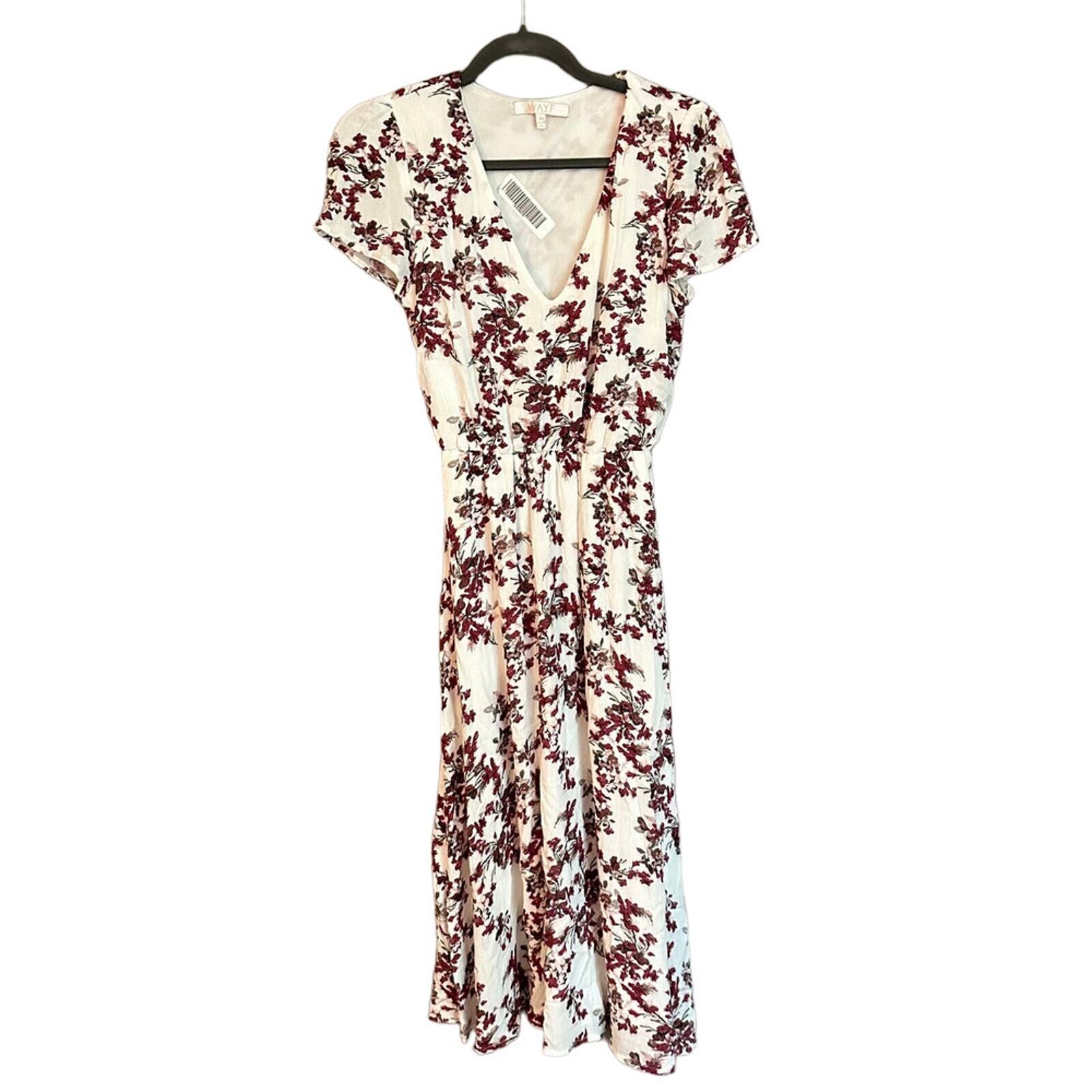 WAYF Womens Dress Midi Cream Dark Red Floral V Neck Cap Sleeve Elastic Waist XS Cream, Dark Red, Floral, V Neck, Cap Sleeve, Elastic Waist, XS, Summer Dress, Casual Dress, Stylish, Lightweight