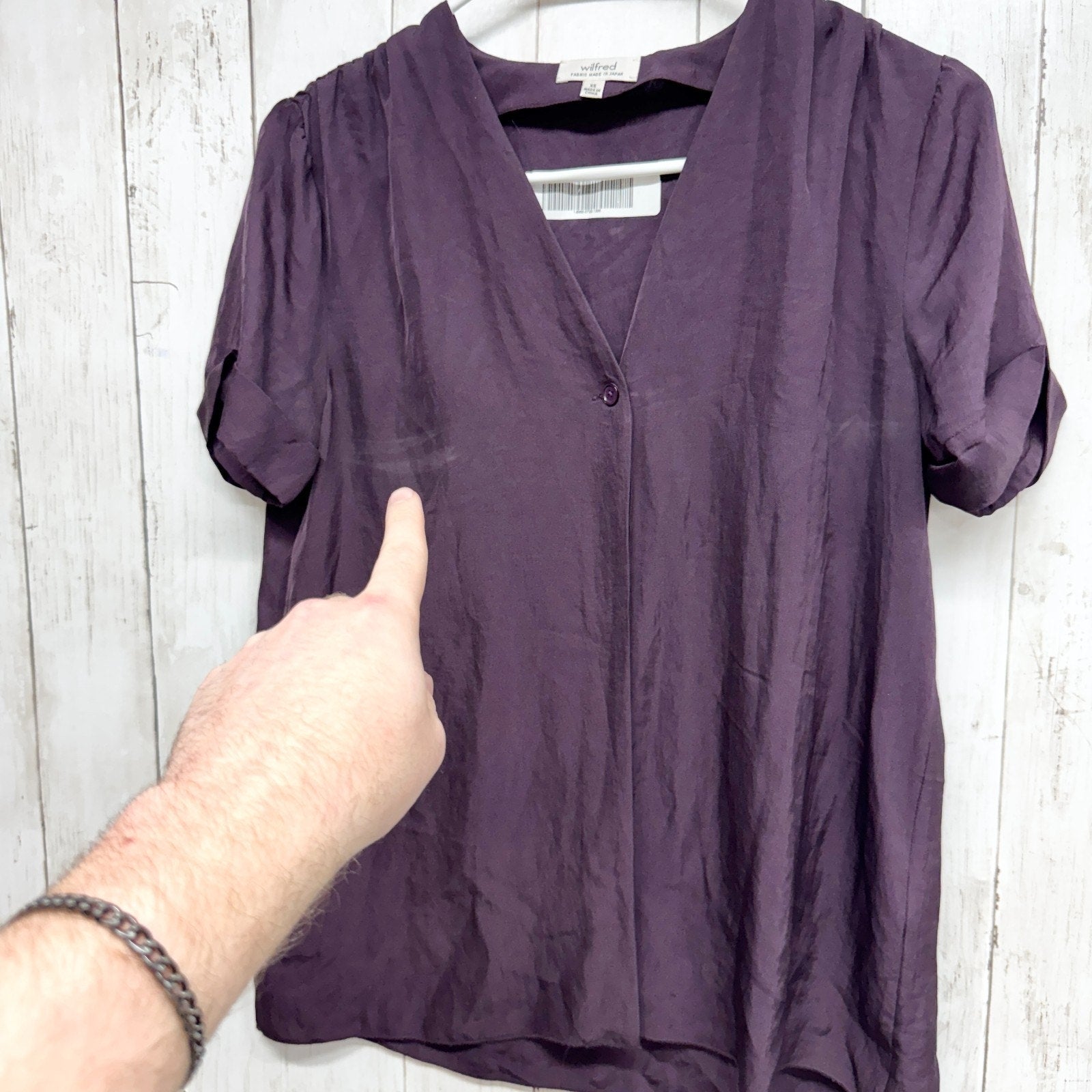 Wilfred Top Women Size XS Plum Vneck Button Short Sleeve Blouse Cuff Sleeves