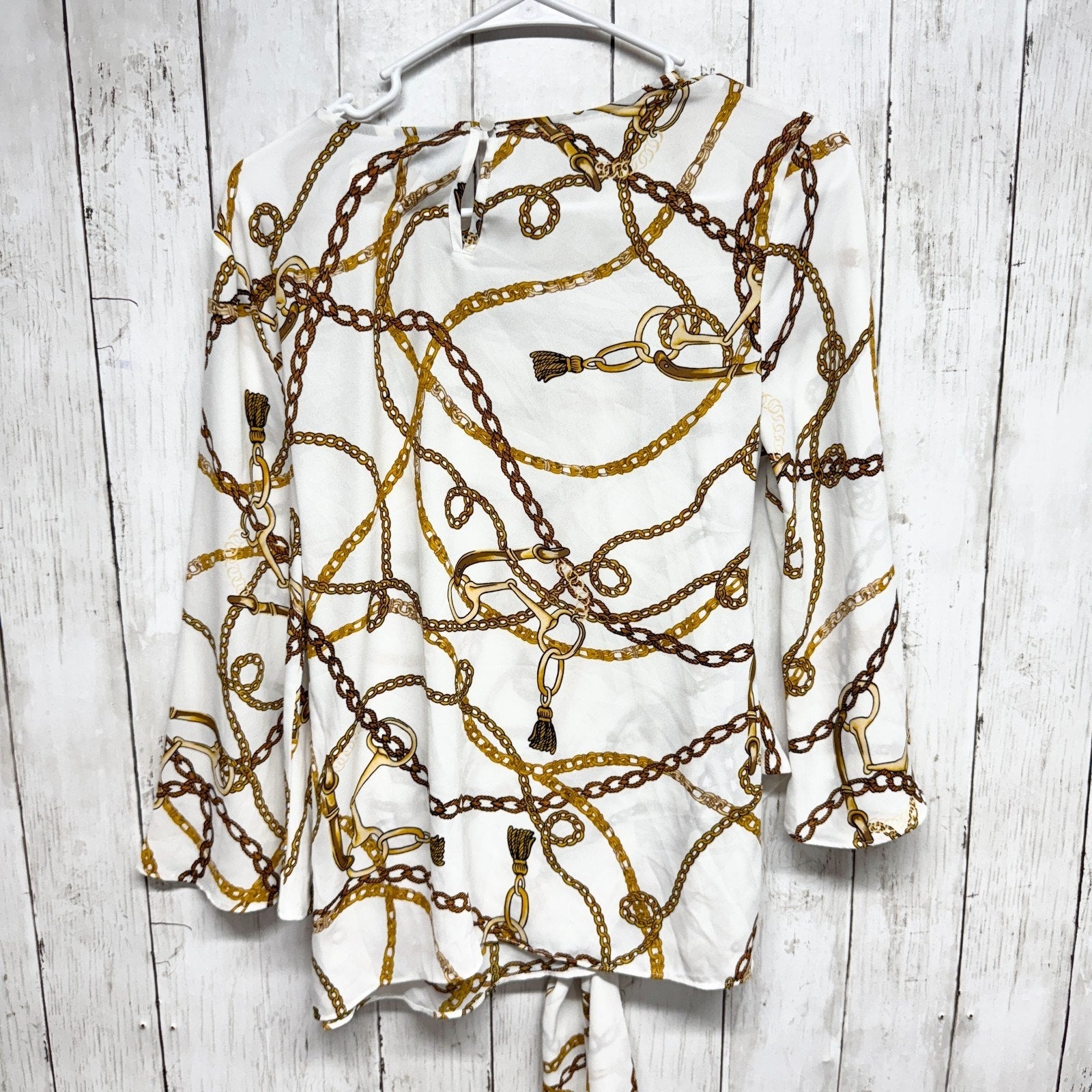 Worthington Shirt Women Size Small White Chain Tie Front Long Sleeve Blouse