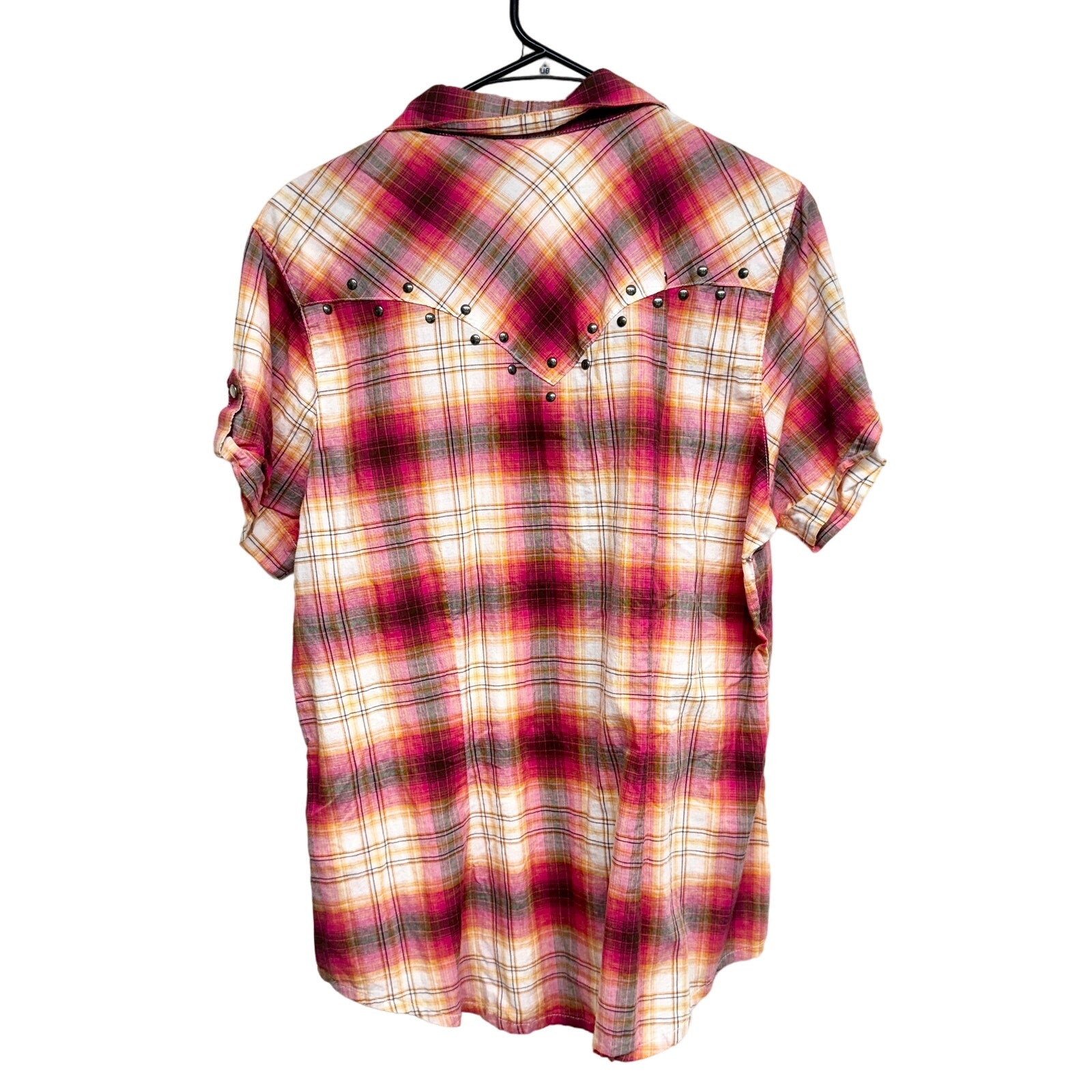 Wrangler Women's Pink & Orange Plain Pearl Snap Button Up Short Sleeve Size L