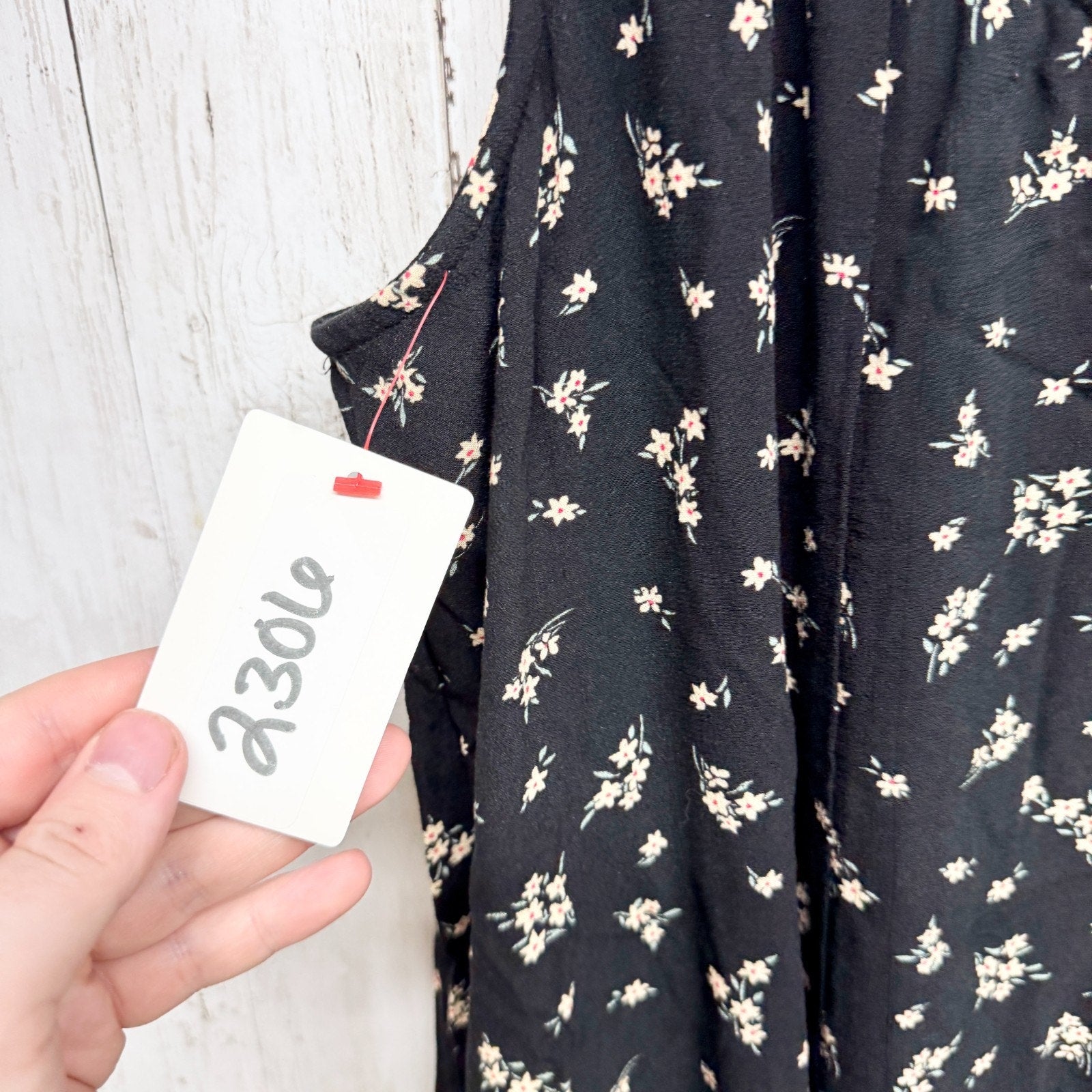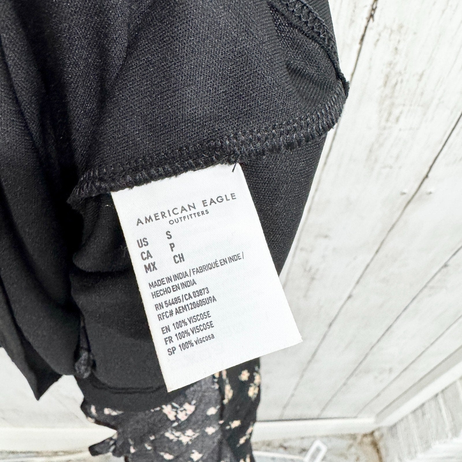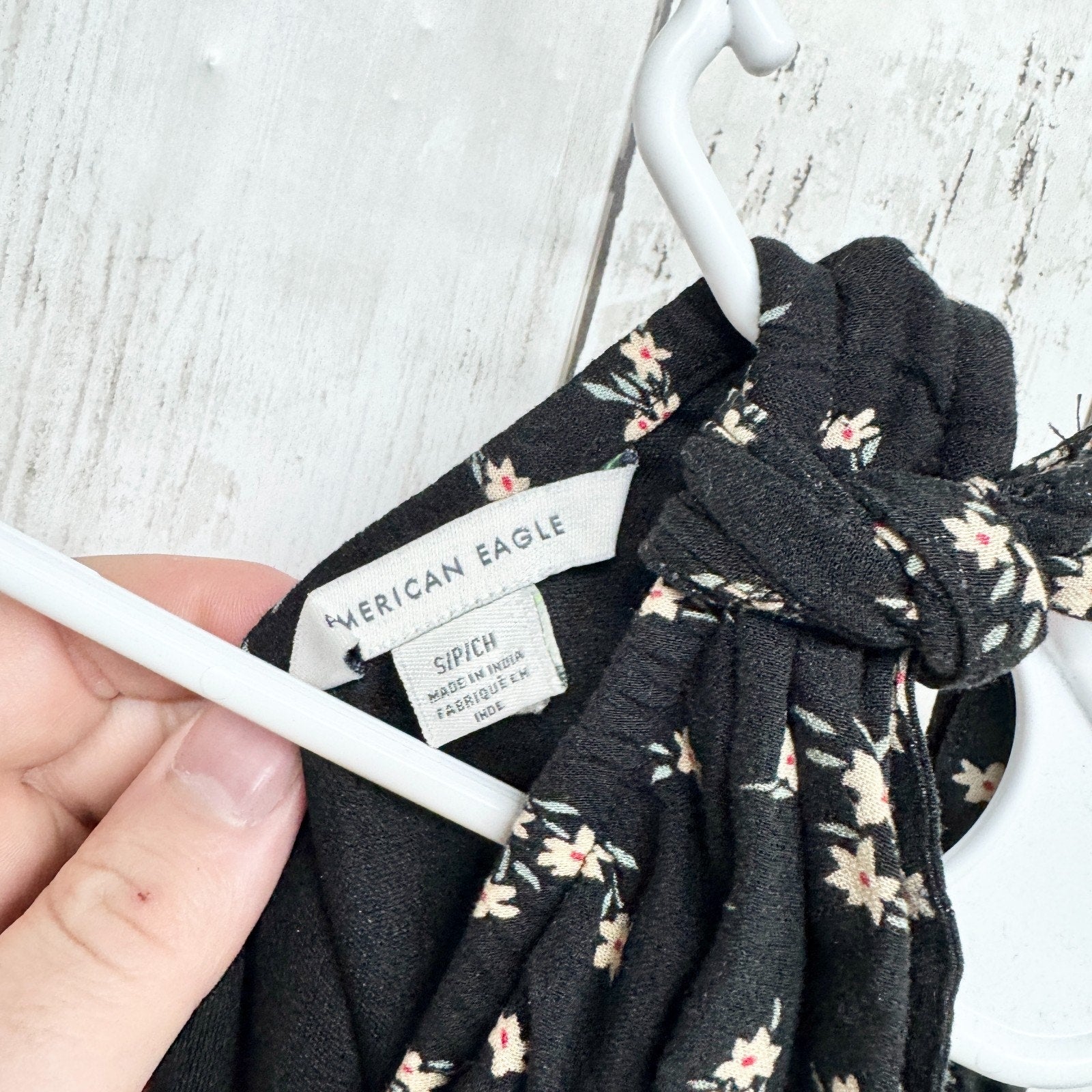 Y2K American Eagle Dress Women Size Small One Shoulder Black Floral Mini Casual