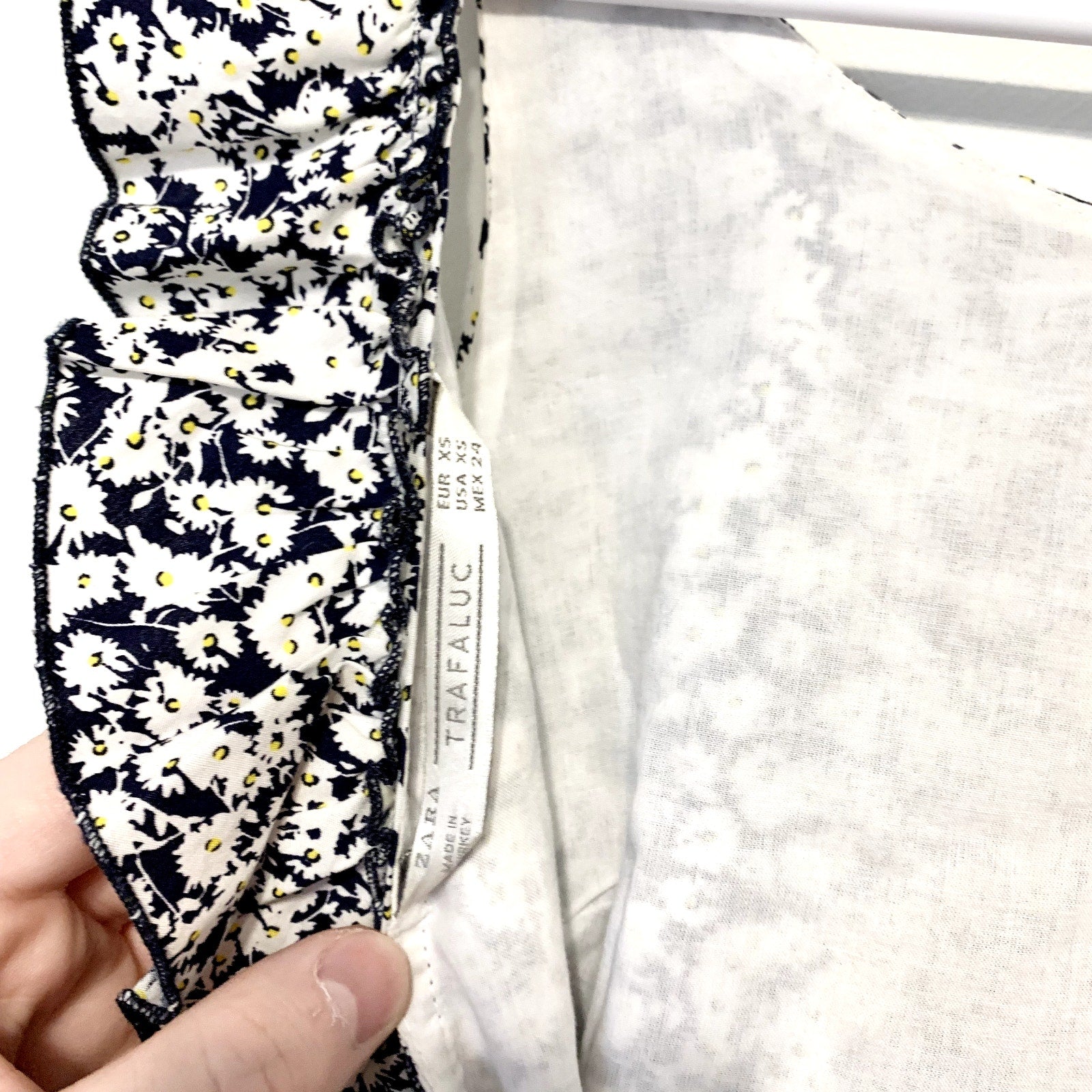 ZARA DRESS WOMEN Size XS Ruffle Deep V-Back Daisy Floral Mini Dress chic, flirty, feminine, lightweight, breathable, elegant, stylish, delicate, summery, playful
