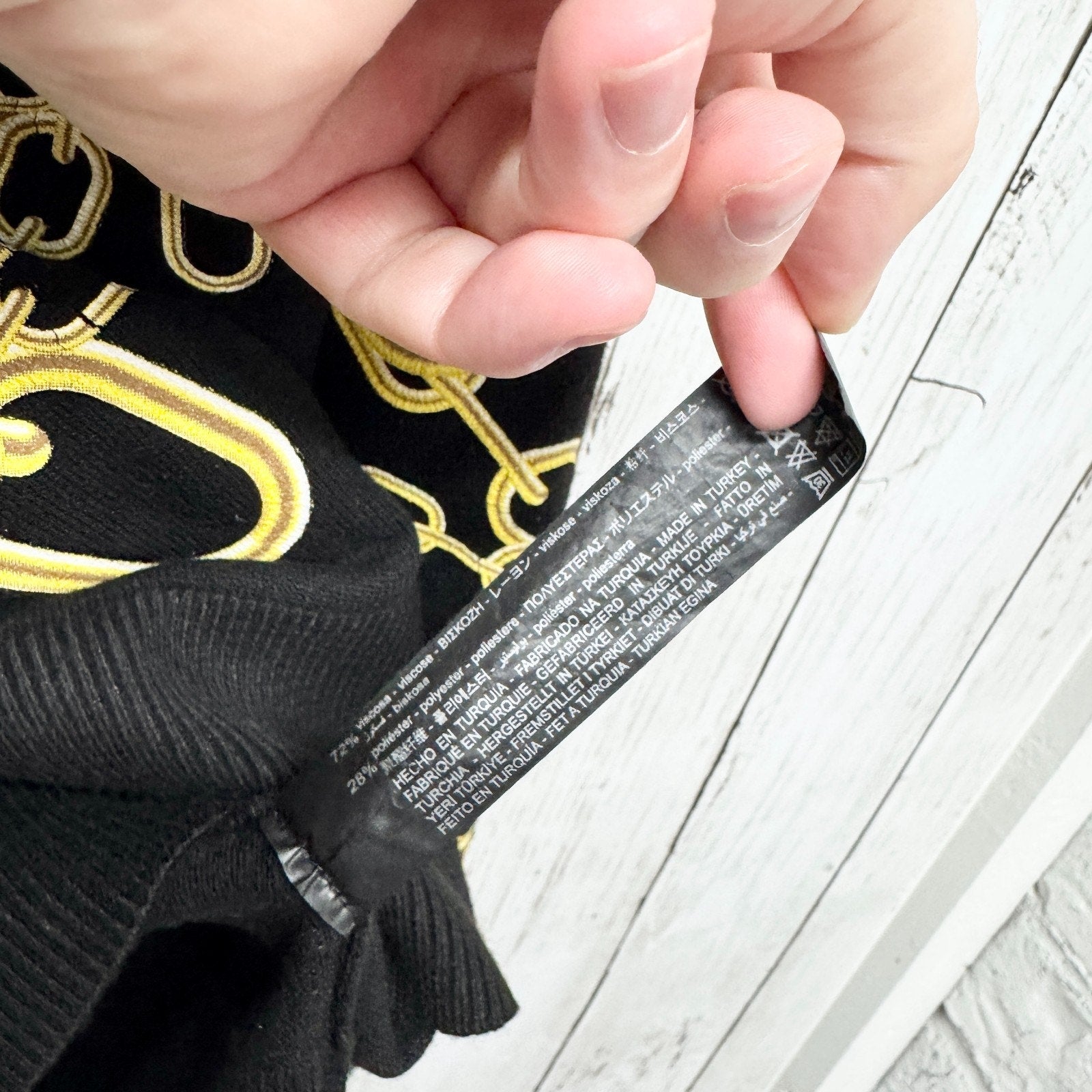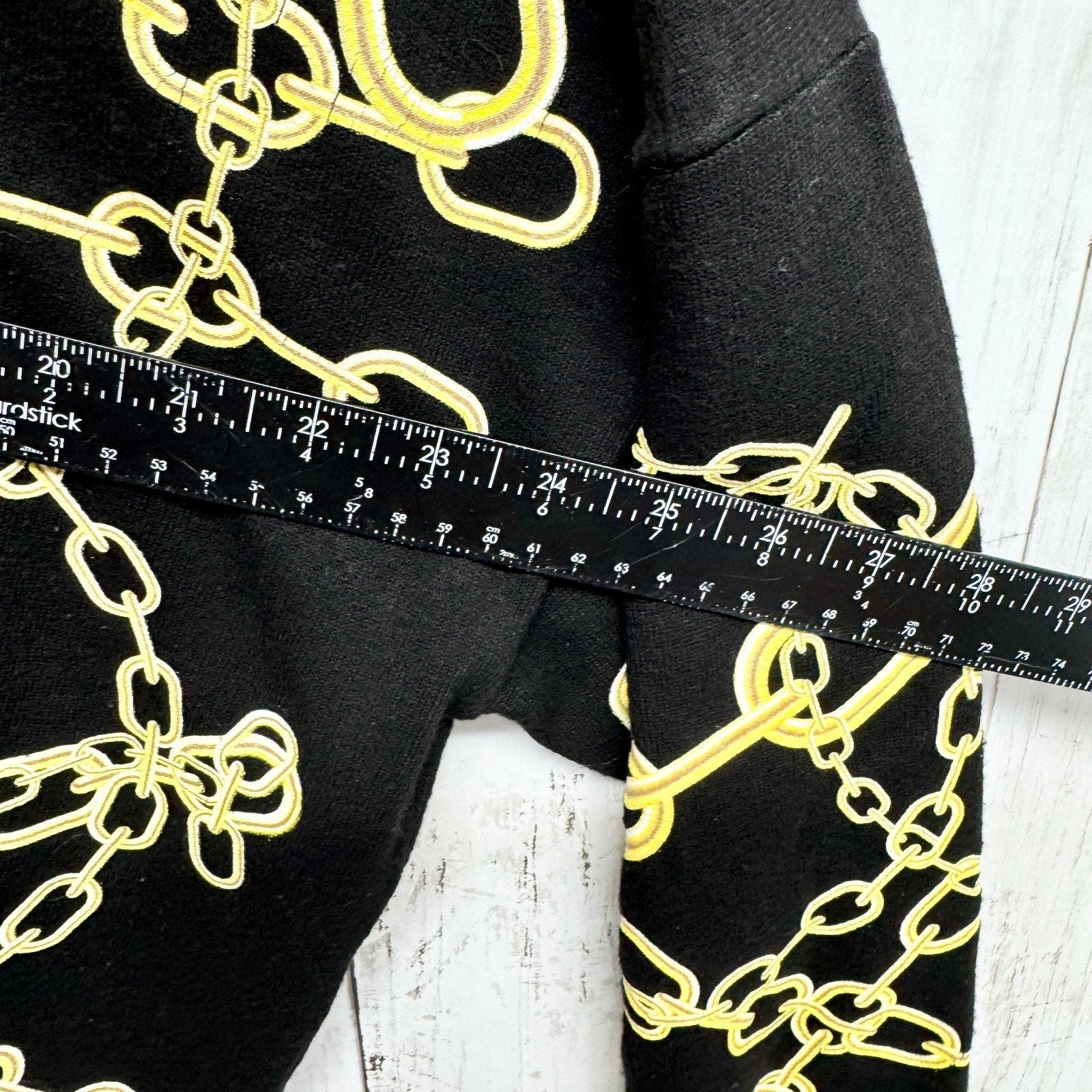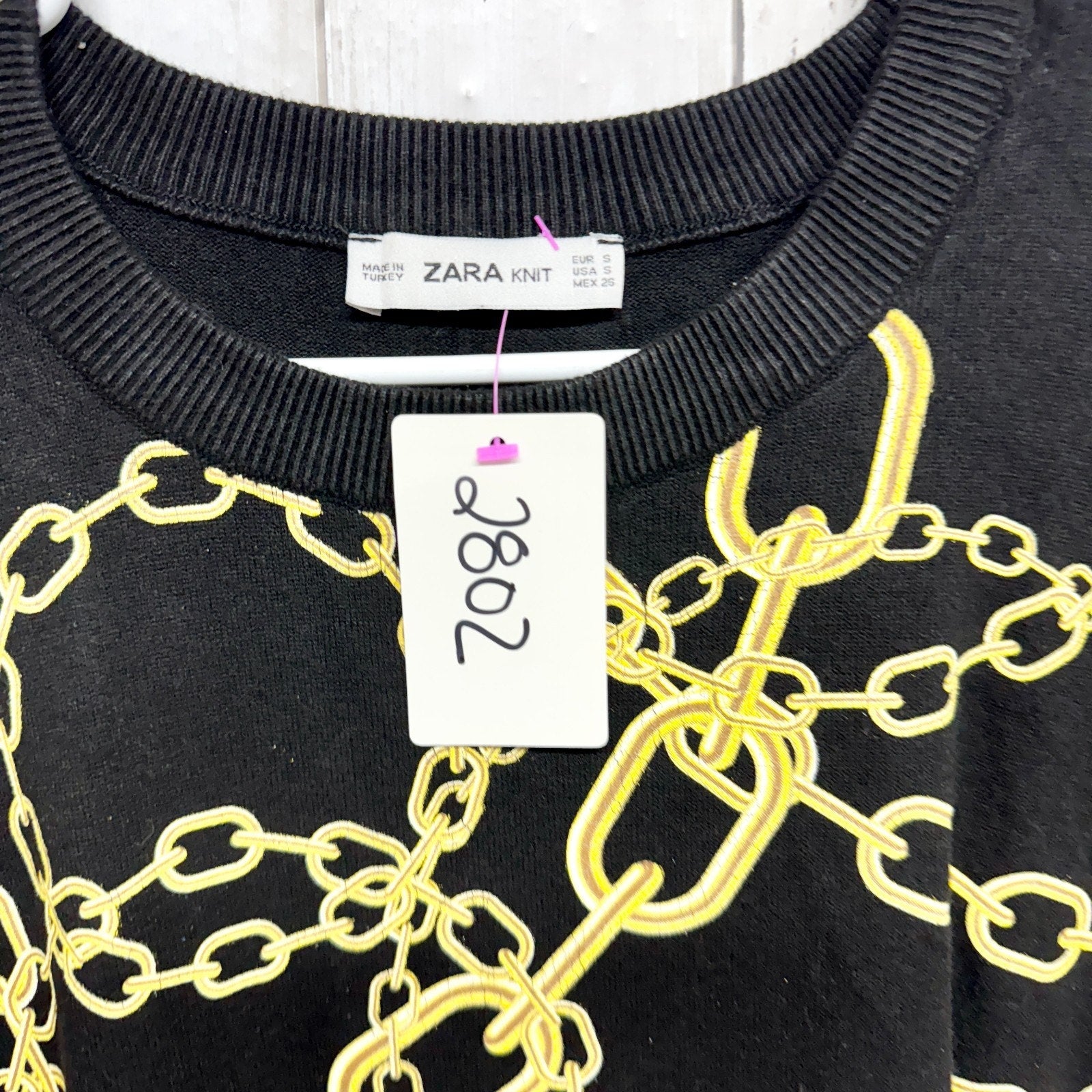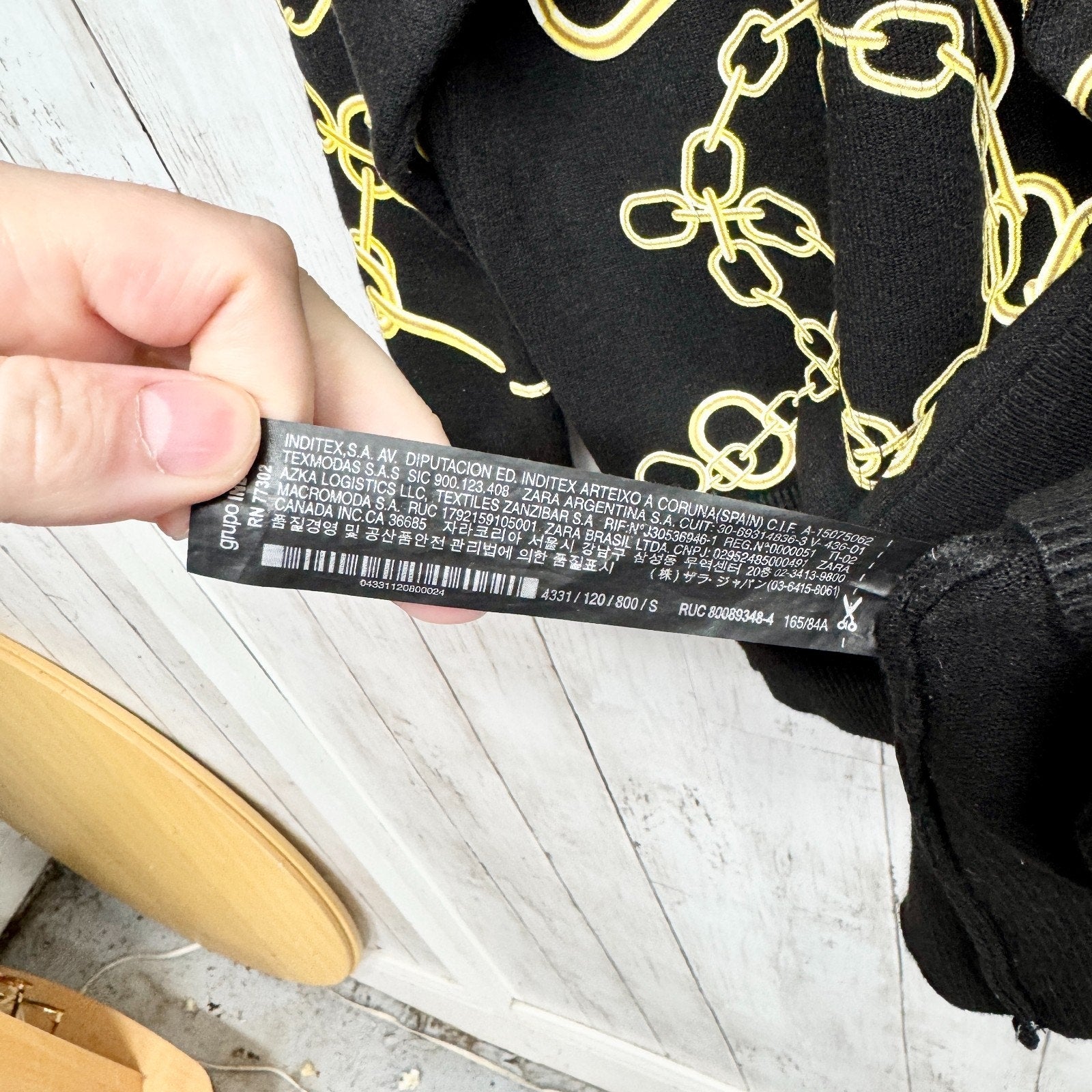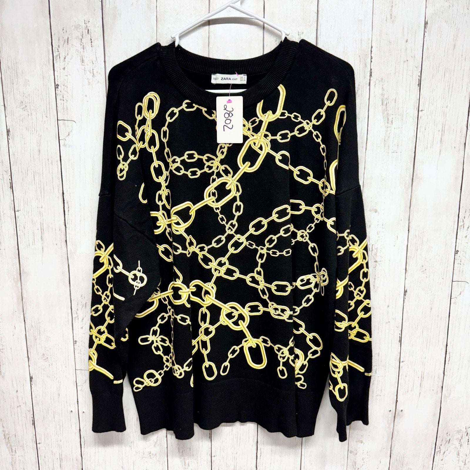 Zara Knit Sweater Women Size Small Black Gold Chain Printer Crewneck Long Sleeve