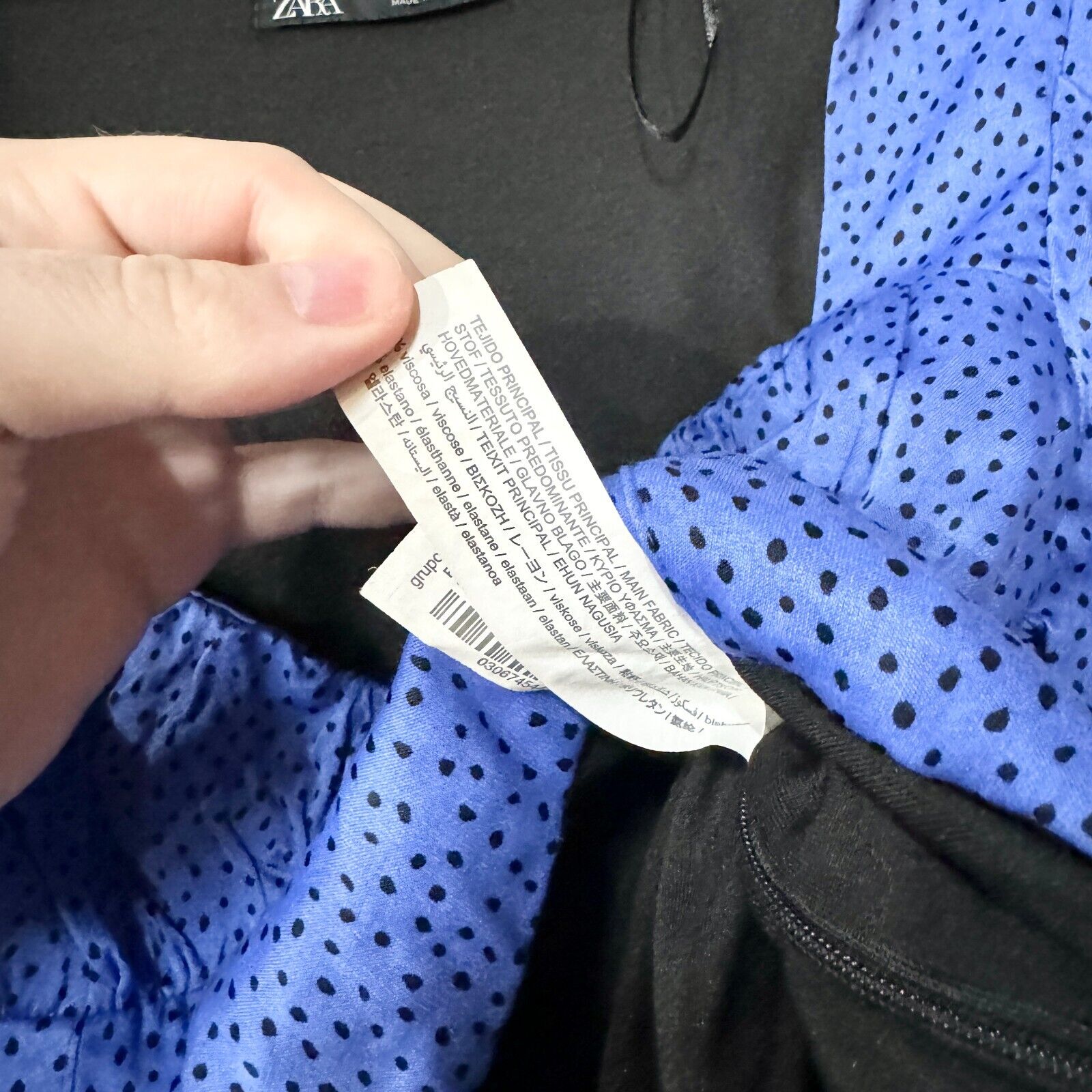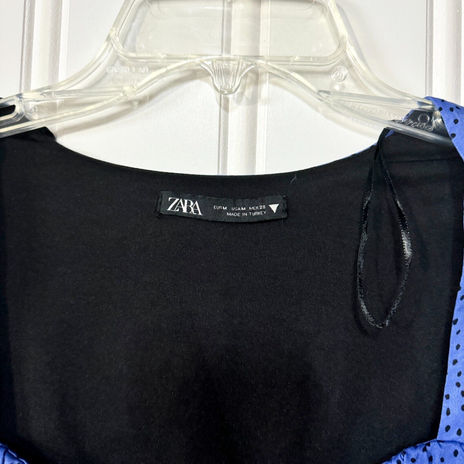 Zara Long Sleeve Sweetheart Blue Poka Dot Retro Crop Top Size Medium