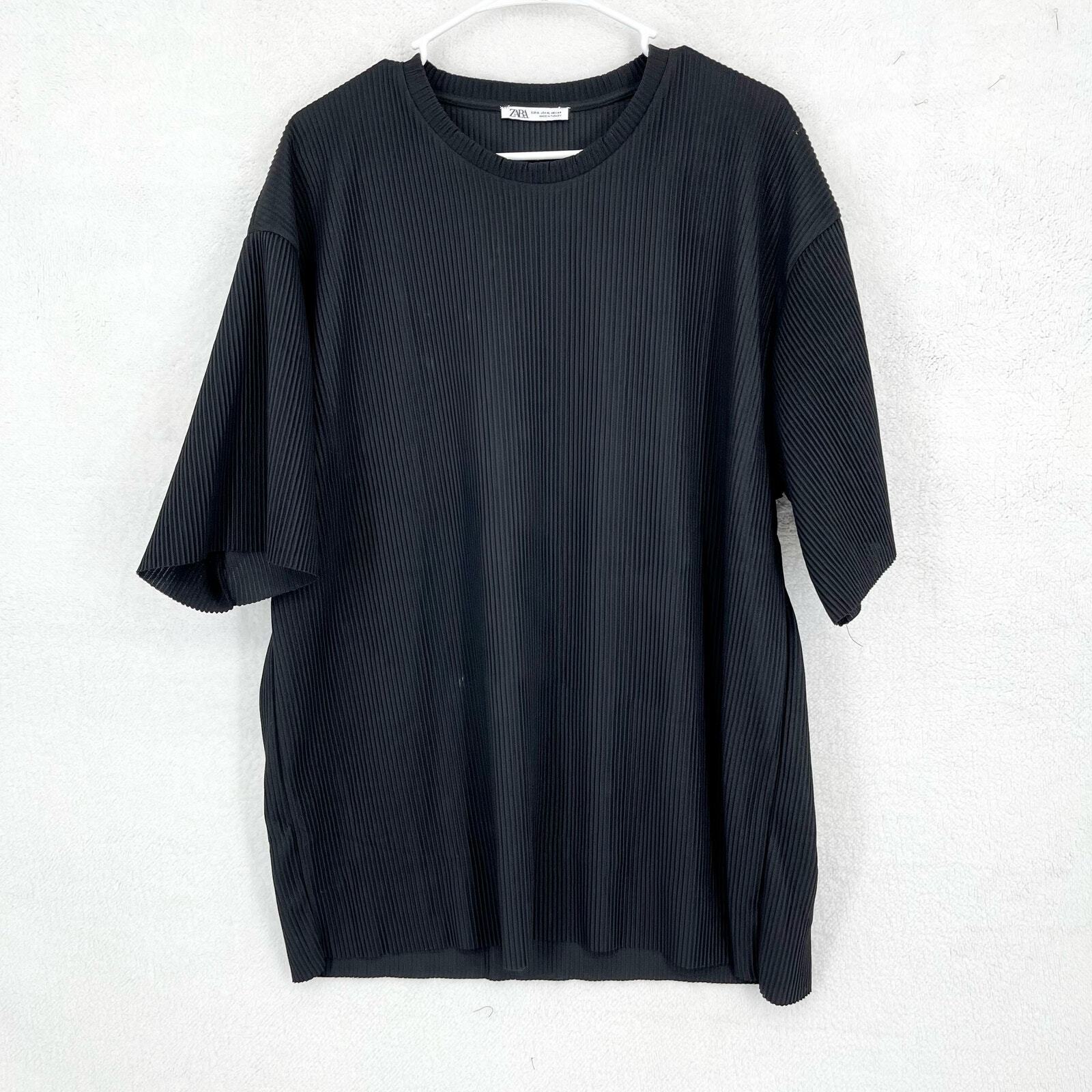 ZARA Tunic Women Size XL Oversized Ribbed Short Sleeve Crewneck Shirt Dress apparel, top, casual, trendy, relaxed, comfortable, stylish, lightweight, oversized, contemporary, versatile, chic, modern, breathable, dressy