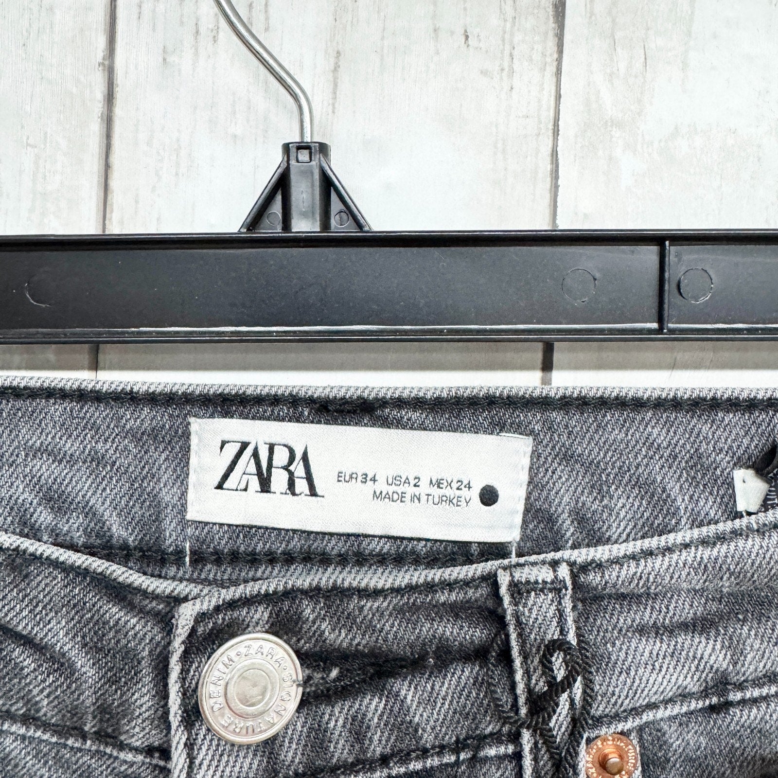 Zara Pants Women Size 2 Washed Black High Rise Straight Denim Jeans Button Fly