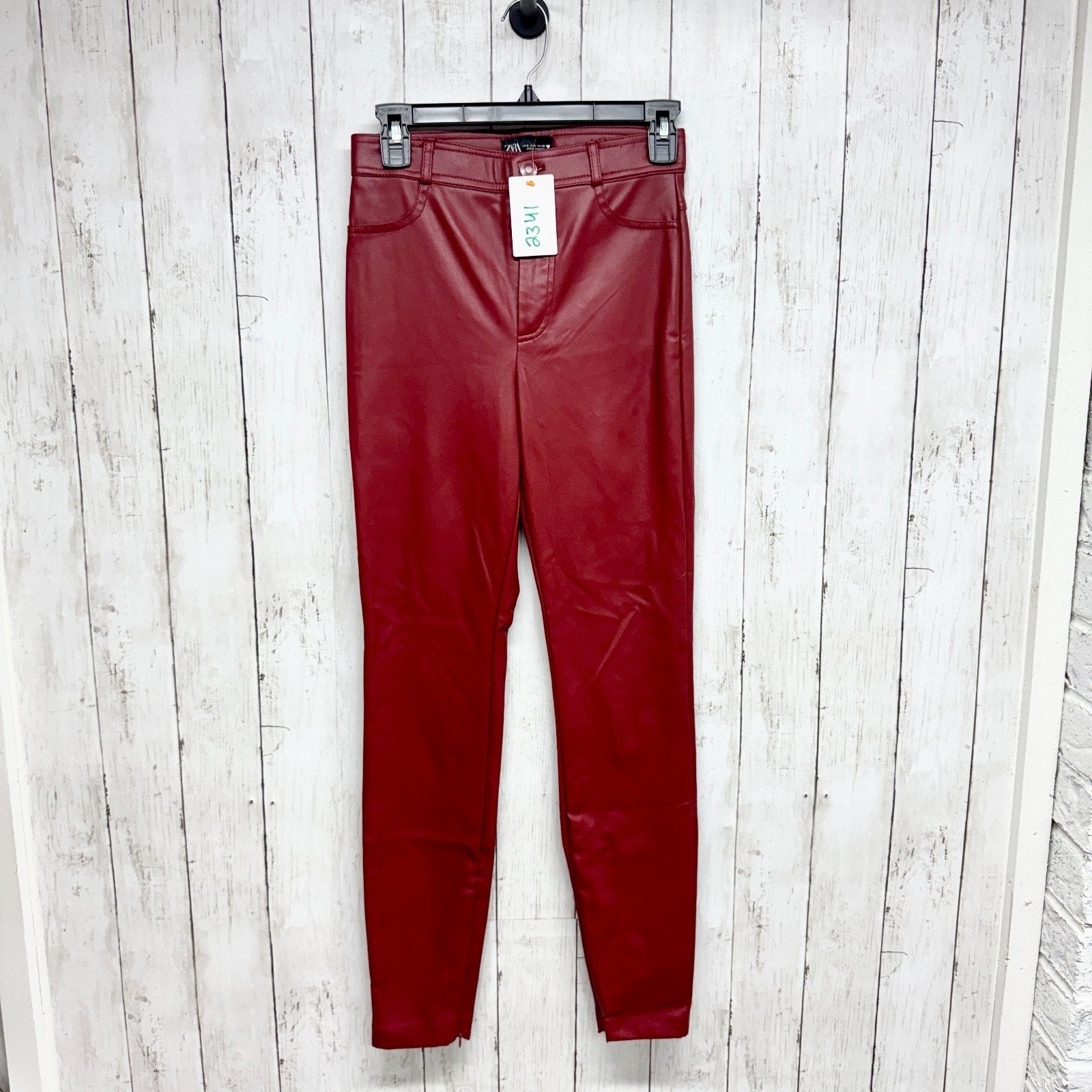 Zara Pants Women Size Small Red Faux Leather High Rise Skinny Zip Fly Pockets