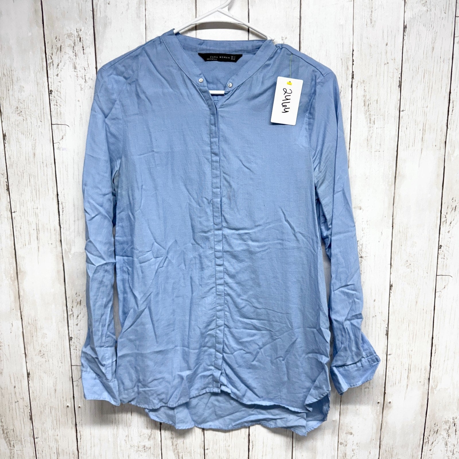 Zara Shirt Women Size Small Light Blue Long Sleeve Button Down Blouse Casual