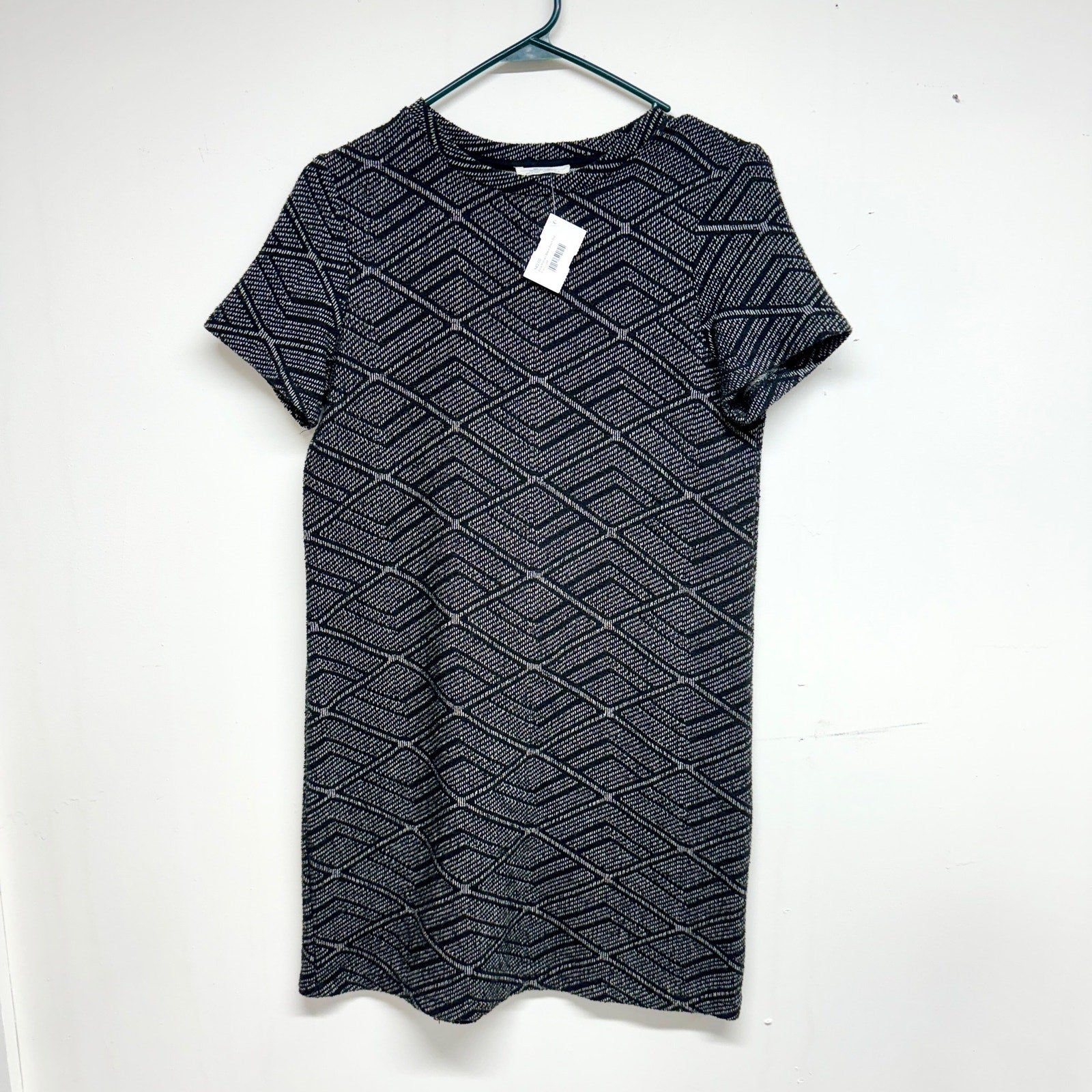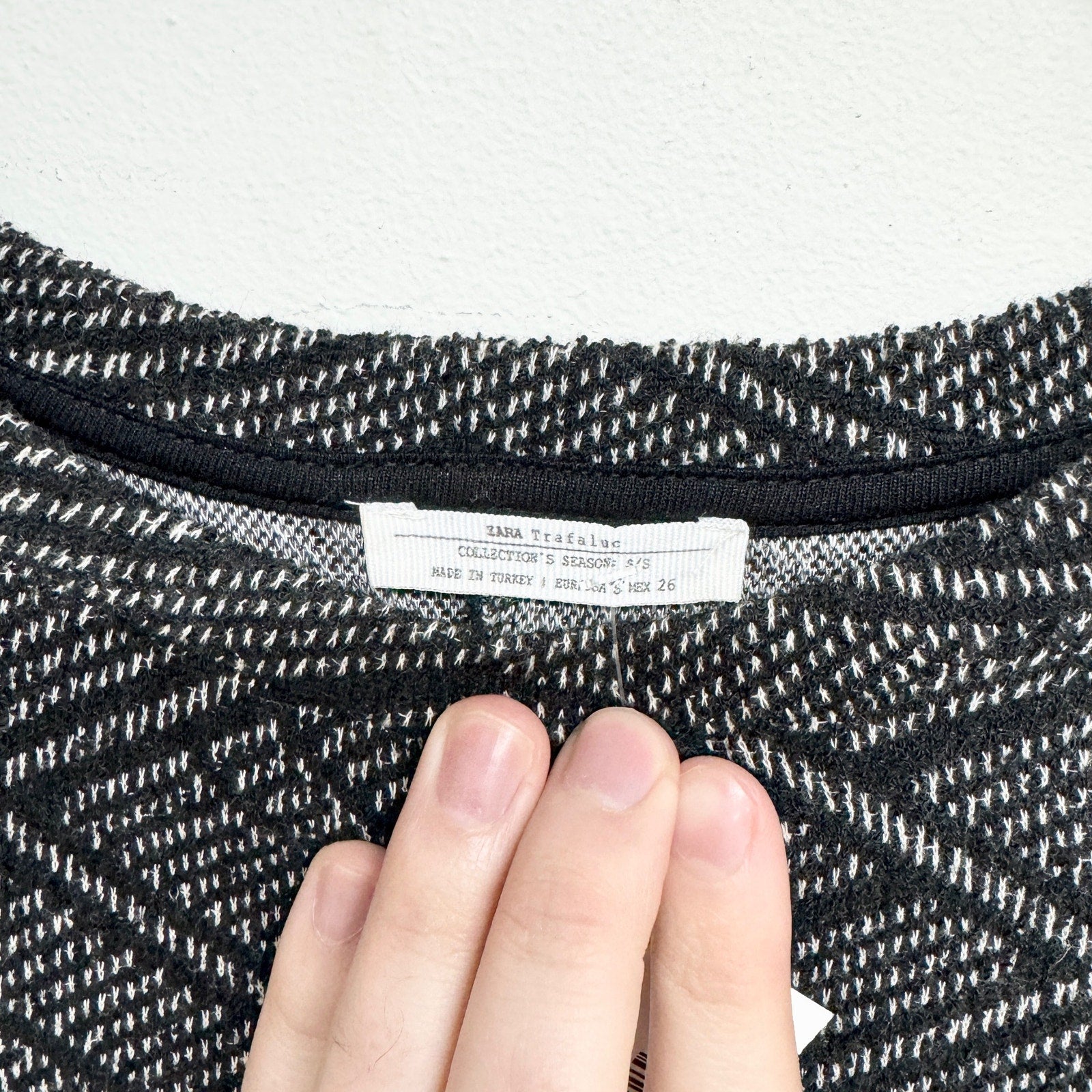 Zara Trafaluc Black White Geometric Print Knit Short Sleeve Shirt Dress Small