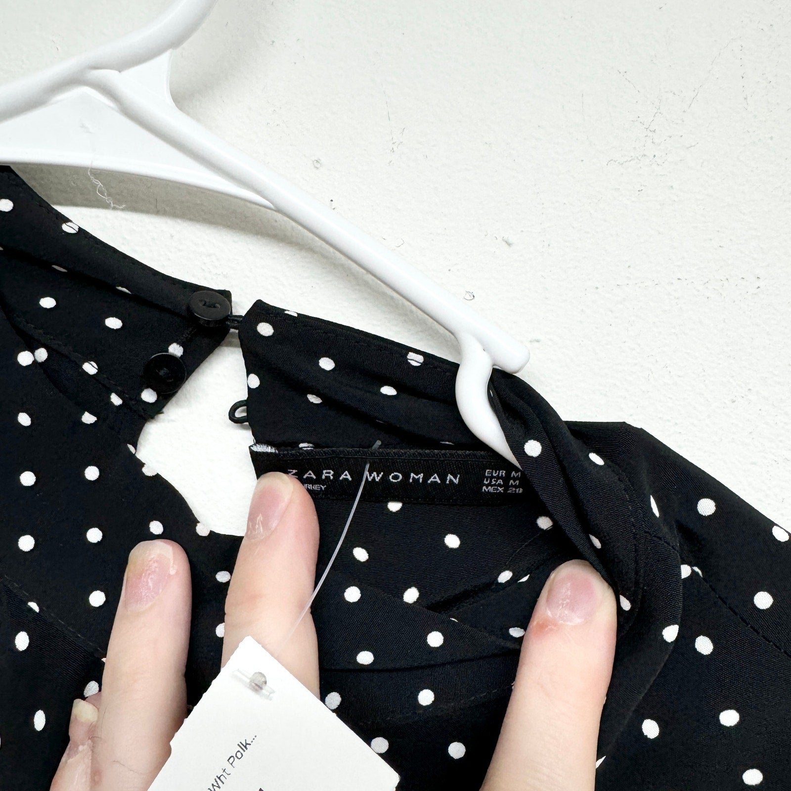 Zara Women Black & White Polka Dot Long Sleeve Mini Dress Size Medium