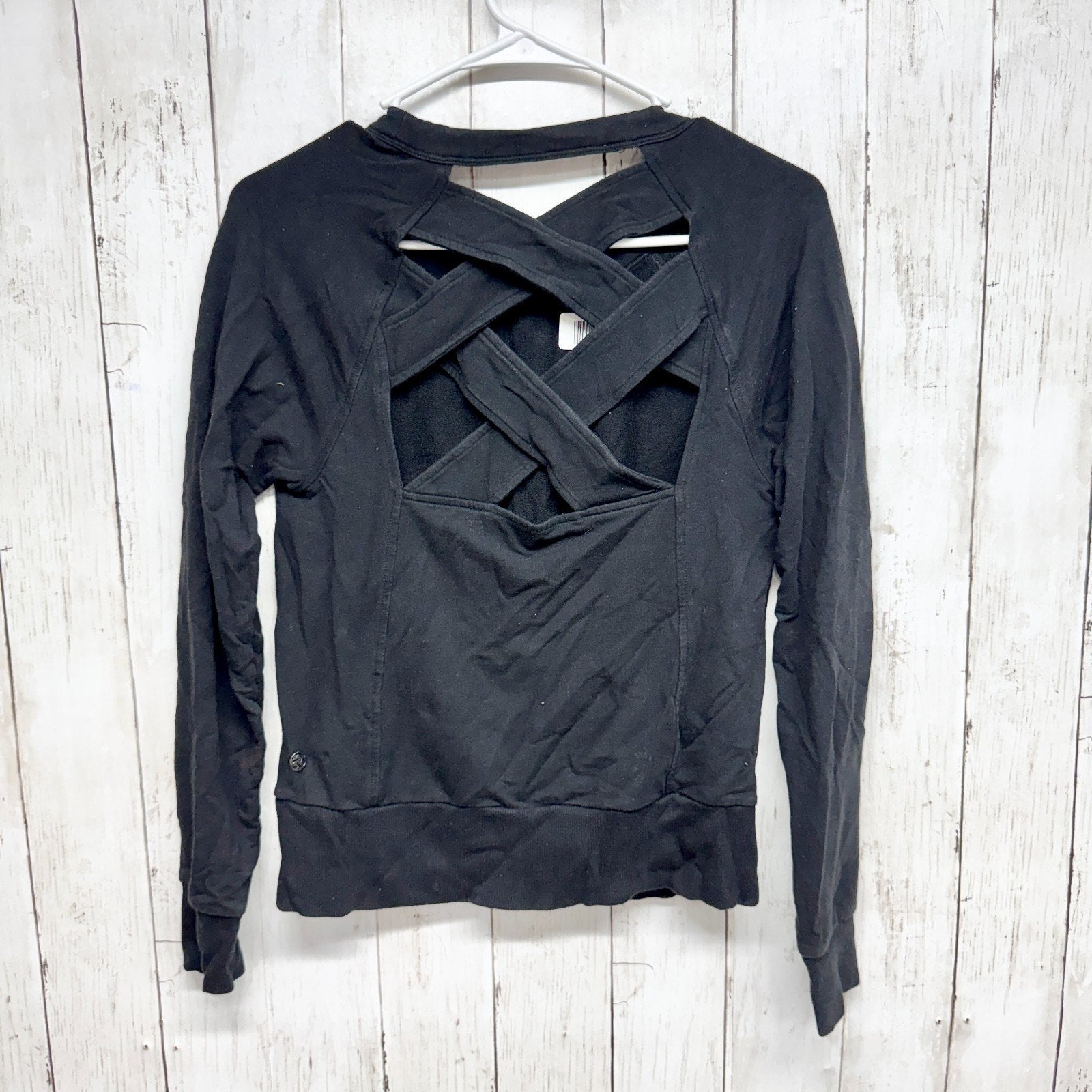 Zella Top Women XS Black Scoop Neck Criss Cross Back Long Sleeve Shirt Athletic